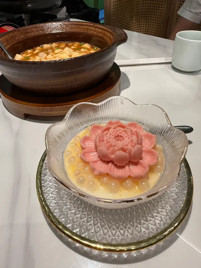 大量打卡菜式晚市兩人埋單$600都唔使😱食之前記得下載會員Apps領取迎新優惠喺餐廳門口已經聞到淡淡的綠茶味餐廳亦都係古風嘅裝修,令人感覺好舒服▫️筆墨酥香以文房四寶為靈感的打卡必點甜品毛筆造型嘅酥油外層酥脆,內餡白豆沙比紅豆更清新唔油膩點上墨汁造型嘅朱古力醬兩者配搭啱啱好▫️西湖盛蓮精緻蓮花造型打卡必點甜品上層蓮花造型草莓布丅搭配杏仁布丁同馬蹄爆爆珠酸甜一啲都唔漏,布丁口感超滑,加上粒粒爆爆珠💥口感好豐富~▫️粉絲襄蝦蝦係以未煮嘅形式上枱,之後再加熱6分鐘店員會幫你開蓋翻炒,一打開香氣撲鼻蝦充滿蒜蓉嘅香味,粉絲吸晒汁送飯一流記得店員離開後自己都要翻炒,如果唔係會黐底哦~▫️江南綠茶餅外層沾有已經炒香嘅芝麻超香口!內層係芋頭餡,甜而不膩每一款打卡菜式都有寓意,打卡之餘仲能夠用全新嘅手法帶出中國傳統文化同風味~…Read More