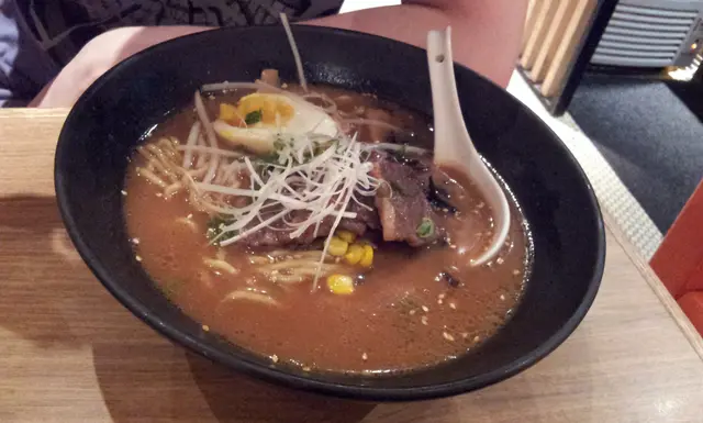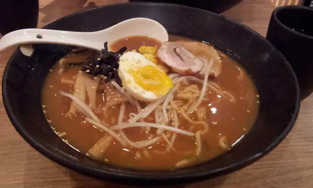 平時見呢間拉麵店店仔細細但好多人排, 唔想等早幾日響灣仔放學, 突然間想食日本野, 9點幾10點見唔駛等wor, 咪試下囉Background係一套日本漫畫, 我地研究左好耐, 先記得係伙頭智多星呢一個係牛牛拉麵, 我唔記得個名啦個湯底好濃架呢個係我叫o既黑豚叉燒拉麵麵噌湯底, 隻蛋幾滑, 我好鍾意呢種麵o既咬口, 煙煙韌韌, 海苔好爽口, 好岩我口味成碗野個感覺清清地, 我初初響到諗, 係咪因為d野唔索味, 食完牛果款, 就知道麵噌湯底感覺係會清d, 但我都好ok!淨係叫呢兩碗, 埋單16x, 夜晚食一餐係咁上下啦…查看更多