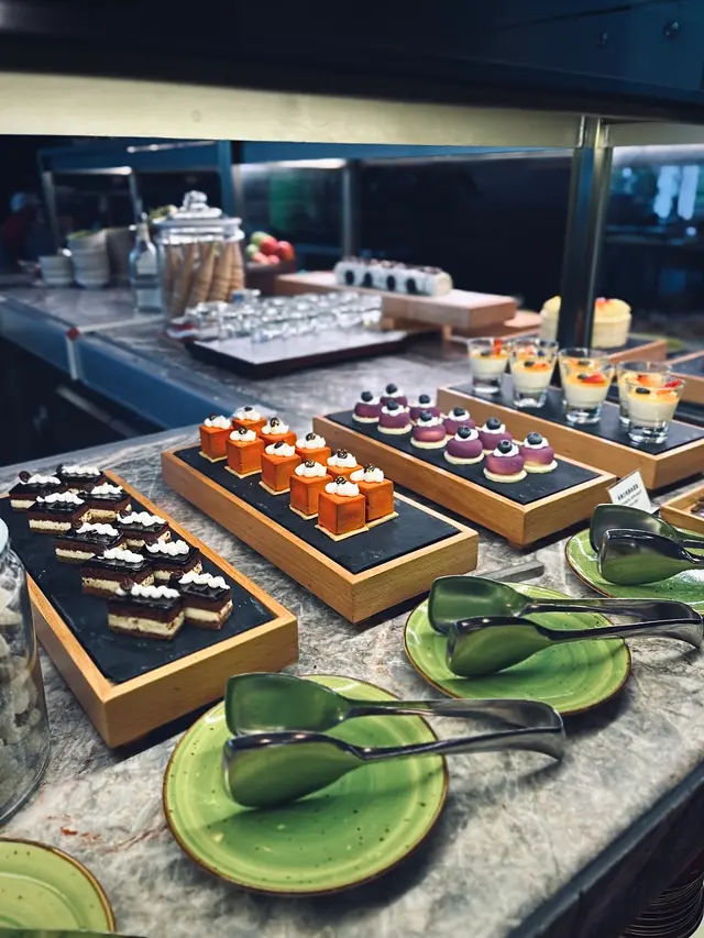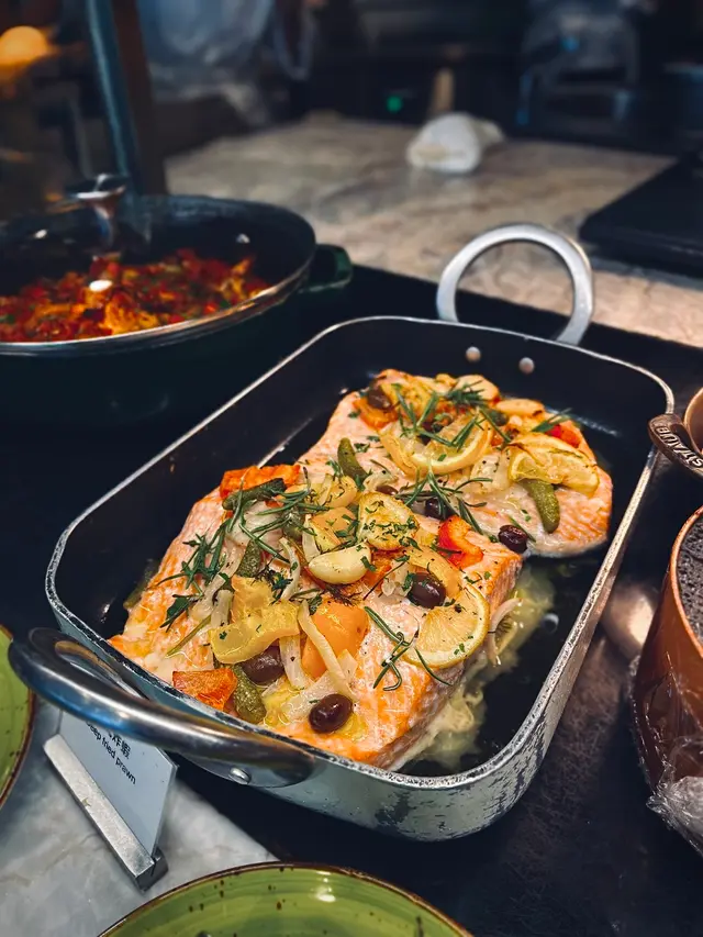 最近不少酒店自助餐都有特價優惠,今次就發掘到香港沙田凱悅酒店官方網店有自助午餐半價優惠。平日星期一至五5折後連加一成人每位只需$282,於下午12:00-14:30供應,可以不追不趕地食足2.5小時。餐廳樓底夠高,環境極盡開揚寬敞,甚有空間感,落地大玻璃將日光引進室內,採光充沛。冰鎮海鮮源源不絕地供應,refill 速度亦夠快,款式包括龍蝦鉗、蟹腳、蜆和凍蝦。值得一讚的是龍蝦鉗早已被敲碎,無需動用剪刀都可將蝦肉完整取出。即切肉類有兩款,包括即切燒牛肉和烤雞。西式熱盤包括燴海鮮、法式燉肉煲、意式炸蝦、烤三文魚柳、蕃茄羅勒長通粉、蕃茄薄餅、焗薯仔、烤雜菜和雜菜湯。烤肉區有烤羊架、烤雞鎚、黑椒豬肉腸、紐倫堡腸和燒菠蘿,即叫即燒,燒菠蘿蒸發了生果中的水分,令酸甜天然果香更加突出。開放式廚房提供多款中式熱葷,例如紅棗杞子炒蝦仁、剁椒蒸龍脷柳、薑蔥鴨、薑汁炒芥蘭、紅咖哩雜菜、叉燒炒飯、韮菜餃、燒賣、蝦片等。燒味檔集齊蜜汁叉燒、白切雞、明爐燒鴨和紅腸,還有粉葛赤小豆煲赤肉、話梅炆豬手和即煮粉麵檔。另有多款魚生刺身和壽司卷物。凍肉有巴馬火腿、火腿和意大利莎樂美腸。芝士拼盤放滿金文畢芝士、瑞士芝士和水牛芝士。沙律吧有多款已經拌好的沙律:海鮮沙律、煙三文魚沙律、希臘沙律、吞拿魚沙律、蕃茄沙律、扒雜菜沙律、凱撒沙律等等。另有多款新鮮沙律菜、調味醬汁及配料,可隨個人喜好自行混搭。甜品區有海量款式:野莓朱古力慕絲蛋糕、芒果慕絲蛋糕、香檳白桃慕絲蛋糕、朱古力脆米蛋糕、白朱古力雲呢拿慕絲草莓蛋糕、黑朱古力脆餅、意式奶凍、綠茶紅豆卷、忌廉泡芙、焗菠蘿焦糖牛油蛋糕、麵包布丁、雞蛋仔、葡撻、時令新鮮水果和糖果......其中一大特色可算是賣相精緻的原個蛋糕,同時滿足視覺、味覺享受。亦有一口一件的迷你size,可以盡情淺嚐多個款式。即製甜品有班戟,Crêpe質地厚薄適中,口感柔韌,內含天然完熟香蕉果肉作內餡,還可添加雪糕和各款配料,微熱的餅底與冰凍的雪糕,一熱一冷,衝擊味蕾。最後不要忘了任食雪糕,這裡供應足足有八款口味之多。Affogato雪糕咖啡亦是酒店自助餐中較為罕見,集甜點和飲品於一身,將Espresso淋上自選口味的雪糕球,咖啡的微苦含酸,與雪糕的香甜相融合。訂位時表明慶祝生日,就會送上隱藏款式生日蛋糕,點上蠟燭,讓節日添上滿滿儀式感。飲品有咖啡機無限供應,可以隨時自斟自飲。…查看更多