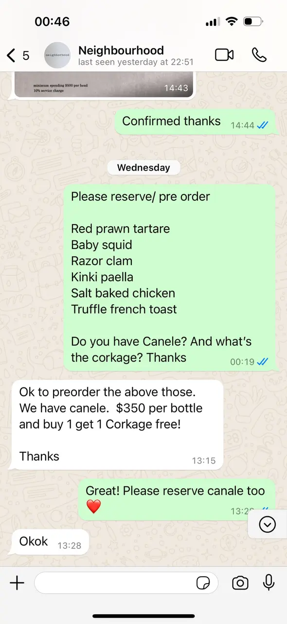 I guess I haven’t had a bad dining experience which is so bad that I am willing to write a comment in thousands words. How they handle the guest experience gets into my nerves. Saturday night, the only time slot available was 20:30. They called me at 20:31 and asked where I was. We were literally 30 seconds away from the entrance. Never encountered something like this. Sounds like they want you to arrive once they are ready and finish ASAP so they can leave work earlier. We have reserved and pre ordered some dishes. Of course their salt baked chicken is included. It’s $980 on the menu when they sent me thru whatsapp. We have also reserved the kinki paella, 2 starters and 2 dessert. Once 4 of us were seated, the lady, probably the manager told us what dishes we had reserved which the orders were incorrect. She went to check and came back to confirm our correct order. She told us we could order some more starters as we only had 2. So we ordered burrata and short ribs, 2 more starters on top. She was also hardselling the white asparagus to us and told us that’s the last portion. She didn’t ask us once only but three times. Tried a little bit too hard on selling your last asparagus to the last table you have for the night right? Suddenly she stood between our table and a table of 2 next to us, showing a chicken cover with salt. As the host, no one explained what’s happening. Then the lady started demonstrating and explaining the ingredients to that table of 2, didn’t have any eye contacts with us at all. My friend did tell me the lady said discreetly to her, we were sharing half chicken with that table of 2. What??!! Did I ever say I reserved half chicken only? It’s not even an option on the menu?! Can anyone explain to us what’s going on? But then i saw they served a whole chicken to a family of 4 just next to us. That made me wonder, probably if they served us one whole chicken and half chicken to that table of 2, half chicken is not able to sell as we were the last table of the night. As a one michelin star restaurant serving sophisticated dishes style like this, I do expect they would change our plate courses by courses. They didn’t. They didn’t even change the cutlery we used. Not acceptable for restaurants like this. Service is awkward. Sommelier (maybe) started pouring us red wine so everyone thought our white wine was done. But you know what? After a glass of red, he then started pouring white wine to us again. Some explanation would be great if you wanted to see us would like to have some red wine with the beef? When there’s only us and a table in the private room left, at one point I was the one pouring wine for our table. No serving on any dishes at all. I was scooping the last bit of paella on the pan. The staff didn’t assist me. Instead, she said “aw yes please take the last bit so we can serve the chicken!” Wow! Excellent! Let’s talk about the dessert plating and wording. It’s the worst ever in a michelin star restaurant. Very slobby. A male staff even approached us and said “aiya the wording today is a bit ugly excuses us!” Huh? They haven’t introduced us the content and ingredients of the dishes when they serve us, not even a single dish. Service is super awkward and not up to standard at all. Understand it may not a fine dining restaurant. More like a casual one. But I cannot feel we are welcomed and warm or whatsoever. For this kind of bad service, you have to attract people to come back with your amazingly great food. Unfortunately food is not bad but nothing wow. So please tell me why I would come back and recommend this place to others? The worst is, from the beginning to the end, no one explained only half chicken is served to us and no one explained the cost as it’s not written on the menu. Whole chicken is $980 and they charged us $550 for half chicken. If you don’t charge $980/2 = $490, do you think you should explain it clearly? When I asked them in whatsapp later that night, they apologised for not telling us because they forgot to. They claimed we have reserved 2 main courses which was a bit too much if we had whole chicken. Hello? If we got too much food then why you kept persuading us to order more starters? Even hardselling the white asparagus not once but three bloody times?!!! The famous chicken was dry and you know why? Cause another half chicken which was served to our next table was served 30 mins ahead of us. Guess they placed our half in a warmer that’s why it was dry. And that’s the reason I prefer to have whole chicken. Thanks Neighbourhood! For a restaurant running like this and got a michelin star title, it’s unfair to those small restaurants that really pour their hearts and efforts to run the business. Maybe the owner Mr Lai should look after his guests better and manage his team way better. Asia best? In the same scale as Sézanne, Florilège? Higher place than Mono and Caprice? I’ll let you decide. Let me know your thoughts. …查看更多