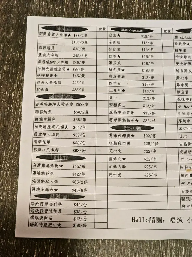 。烤臺式小香腸,小香腸烤得幾香口,外皮有少少脆,咬落去有肉汁。味道系典型嘅臺式甜味,唔會太鹹,小食黎講唔錯