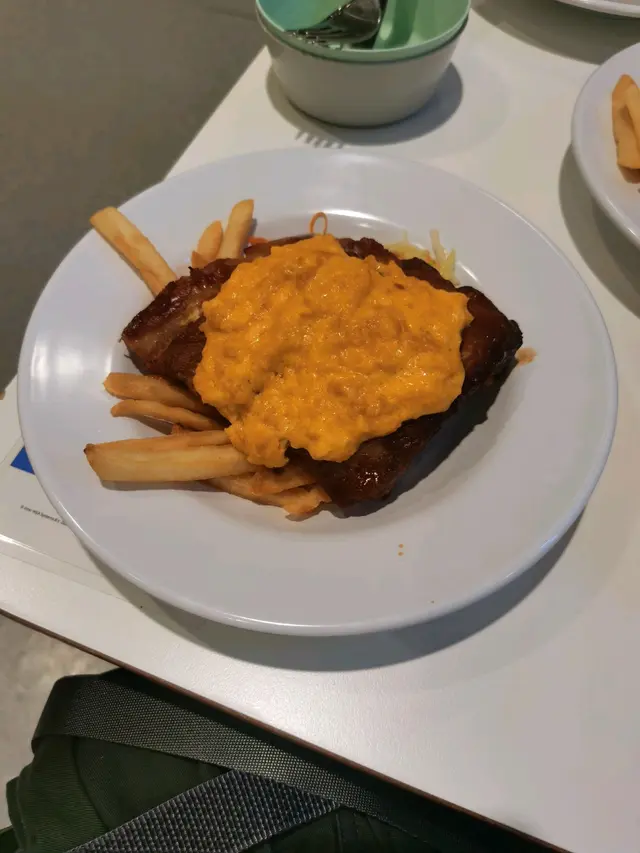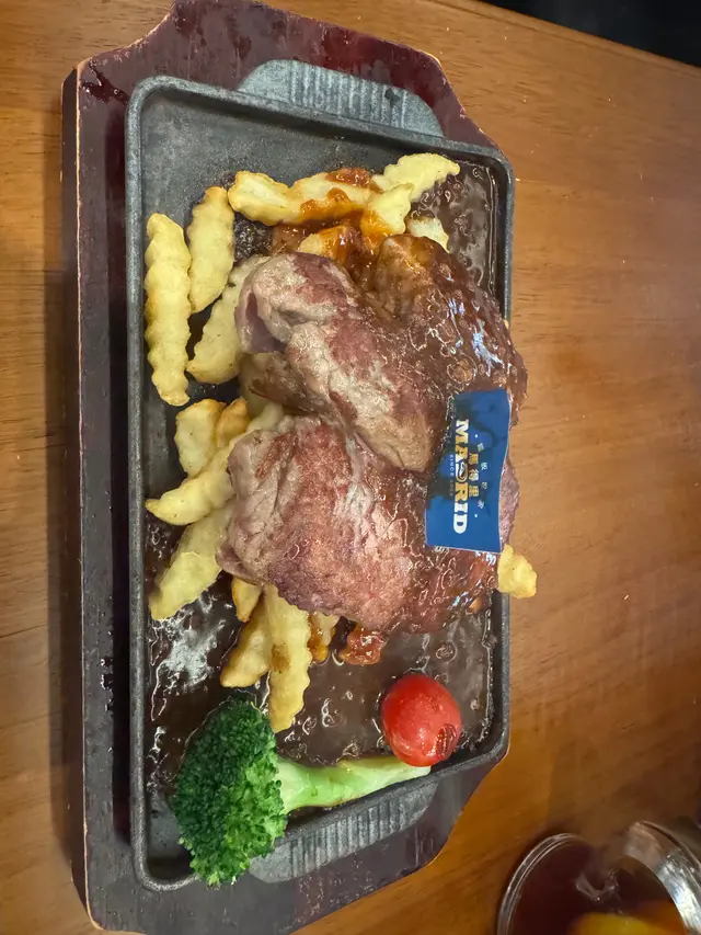 今日大雨 就喺附近食飯,咁啱經過見到間食鐵板肉,見有好多人嚟食,而且又坐滿咁就去試。叫咗鐵板牛柳,法式焗田螺,配羅宋湯同麵包。麵包係熱嘅,仲有牛油,麵包係好食。湯就好鹹,而且完全冇羅宋湯嘅味道。法式焗田螺,我以為會係有啲法式螺連埋嗰啲薯蓉,點知剩係得嗰啲肉,而且賣相一般。螺肉冇味道唔好食。牛柳叫咗五成,肉質嫩滑應該係用咗鬆肉粉,食落口就唔會覺得難咬,但係冇牛肉味。嗰度樓底唔算矮,但係都好嘈。價錢$208係合理嘅。…查看更多