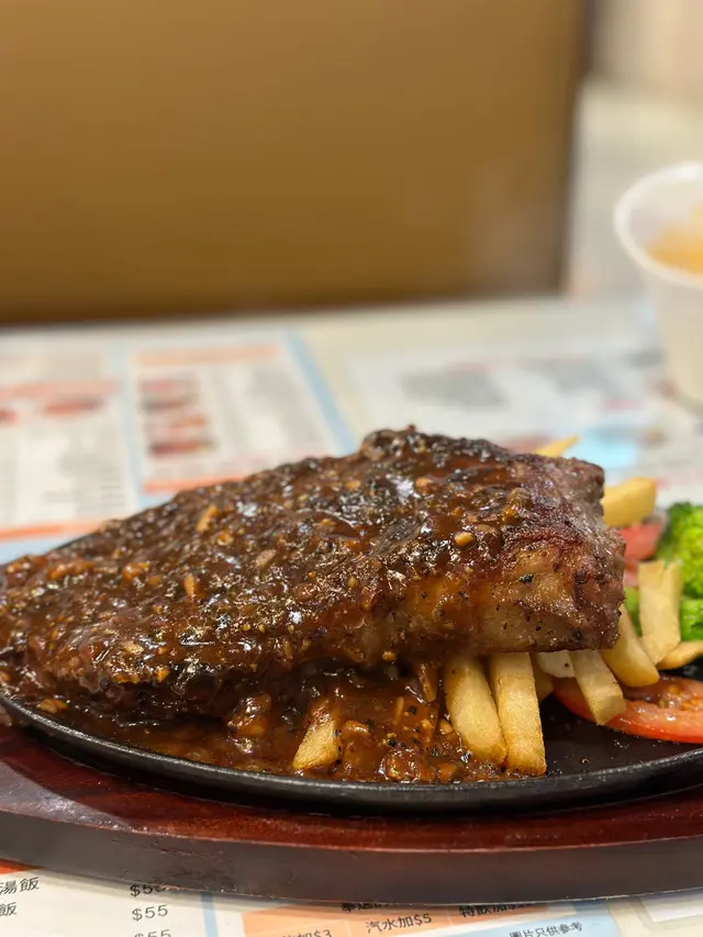 打工仔飯堂 凱旋餐室 2024-11-03今日做野做到好晏,決定食埋飯先歸家。。經過呢間lunch time好多人食嘅餐廳,決定試試佢。呢到選擇都好多下,最尾揀咗鐵板餐。首先很快上了餐湯,我揀的是羅宋湯,非常對我口味,是很濃而且偏甜的,最驚喜是裏面竟然有牛筋粒,足料喔然後,鐵板餐製作需時,就係我啱啱飲完晒啲湯就上菜了,份量超多,最尾我是吃不完的🙈醬汁方面,我揀咗黑椒汁,個人認為是最惹味的🤣估唔到牛扒生熟度控制得不錯,以港式牛扒黎講~配菜都幾新鮮,薯條十分香脆!😋…查看更多以上食记乃用户个人意见 , 并不代表OpenRice之观点。赞好分享打工仔飯堂 凱旋餐室 https://s.openrice.com/QrLT0dTrN00检举 张贴 评分5味道4环境5服务4卫生5抵食用餐途径堂食