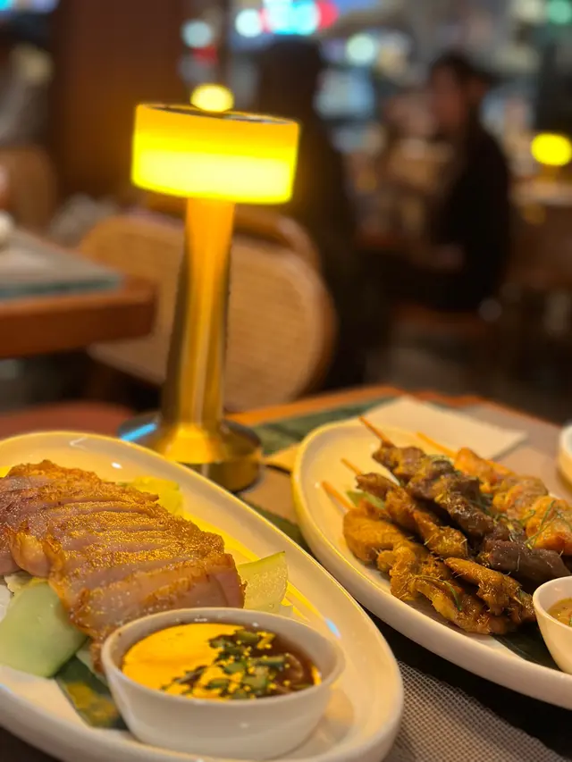有 feel泰越菜 Ruên Thai & Vietnamese 2024-12-11經過過呢間餐廳好多次, 都被佢嘅靚裝潢吸引住,今日終於約到朋友來食。坐位都幾舒服,每枱之間的間距很足夠,坐得舒服,店員都態度很好,笑容滿面,食得開心嘅一餐。燒豬頸肉燒得超嫩滑、juicy!! 配埋甜甜酸酸的醬好食沙嗲拼盤沙嗲醬超香,應該點咩都會好食🤣豬同雞較為推薦火山排骨湯汁酸酸甜甜、很開胃,但肉質比較有咬口馬沙文咖喱必點!如果都鍾意食甜甜口味咖喱的話😋蒜蓉包外脆內軟,好香牛油蒜蓉味,是咖喱的必配總結:會再次光顧的餐廳…查看更多+ 2以上食记乃用户个人意见 , 并不代表OpenRice之观点。赞好分享有 feel泰越菜 Ruên Thai & Vietnamese https://s.openrice.com/QrLT0wBLO00检举 张贴 评分4味道5环境5服务5卫生4抵食用餐途径堂食