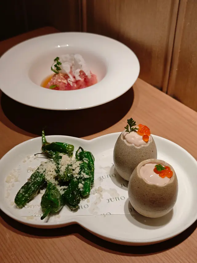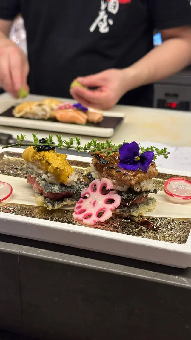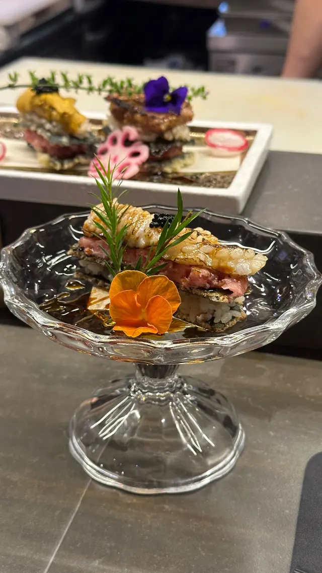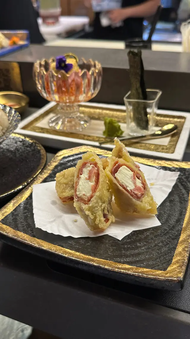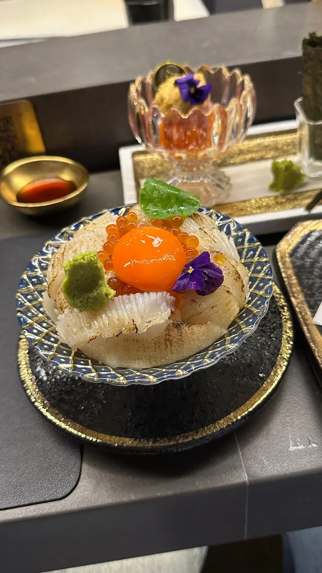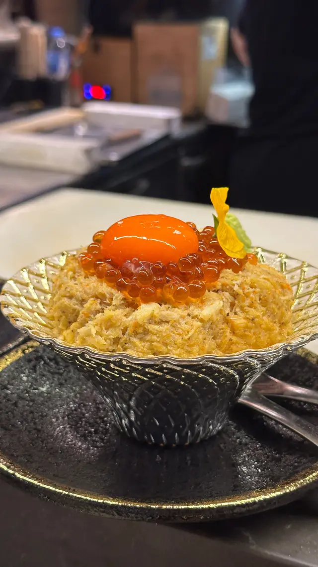 荔枝角隱世金酒屋🏮 視覺與味覺雙重衝擊✨平日夜晚都好多人食!多人的話有包廂位置,今次坐係bar 台可以睇住師傅準備野食都唔錯!🔥 必食高質打卡料理:▫️ 焦糖鵝肝和牛千層脆脆 ▫️ 海膽拖羅蓉千層脆脆 ▫️ 炙燒右口魚裙邊 🔥皇金杯:一啖盡享蟹黃、三文魚籽、拖羅蓉,奢華感滿分💖🔥金龍珠海膽吞拿魚蓉卷:加埋蛋黃無論係口感定係味道都畫龍點睛!一啖擺曬落口真係味蕾衝擊!🔥巴馬火腿芝士天婦羅🔥 兩款丼飯都用料豐富,新銀丼鋪滿右口魚邊,蟹皇丼就係滿滿蟹肉蟹黃🥰…查看更多