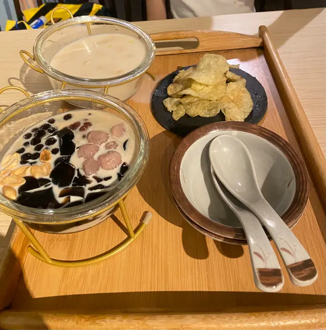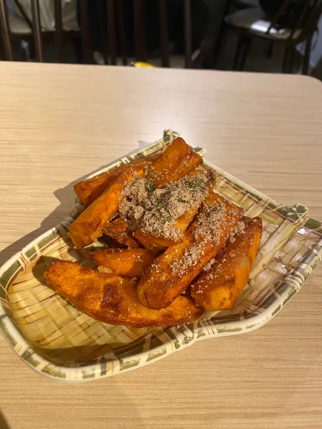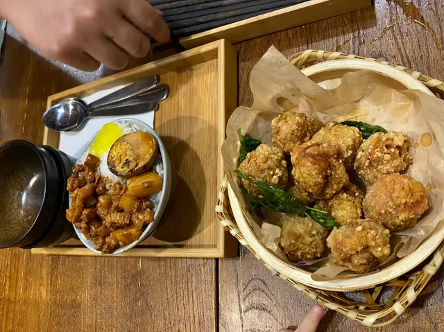 這一家店,服務不錯,菜品都好吃,只有牛奶花生那個甜點不合口味。甘梅粉配蕃薯薯條,這個絕配啊,吃到停不下來,甜甜咸咸的。鹵肉飯配炸豬扒,挺好吃的,有酸梅可以中和一下油膩感,只可惜鹵肉飯的醬汁太多,令到炸豬扒的皮已經濕掉,建議豬扒和飯分開上盤。香酥腐皮蝦仁卷,感覺唔到佢有包腐皮,食唔出蝦味,食出花枝丸味。有仙草的甜點比牛奶花生的好吃太多。我十分推薦各位黎試下呢間餐廳。地點又方便,座位亦坐得舒適。可惜只收現金,當時聽到有一對情侶無現金,要拿拿臨落樓下禁錢😁…查看更多