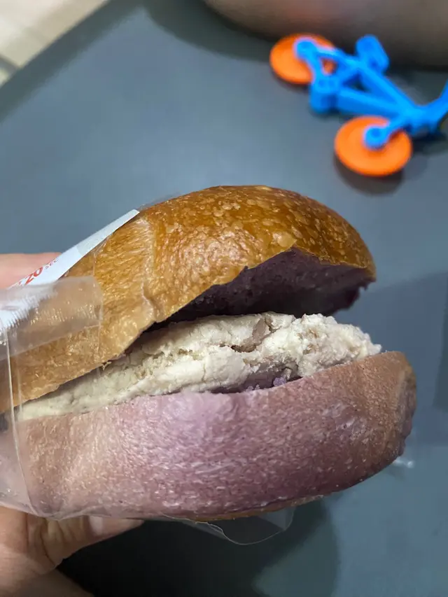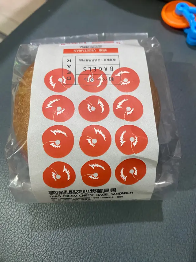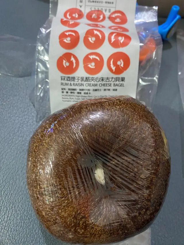 聽講呢家店貝果好食,買兩個黎試下,貝果麵包比普通的店質感較硬同un,亦都比較大一個,很難一啖咬到成個貝果。兩個貝果餡料甜度是微微甜。即係無甜味咁滯😆怕甜既人可以試下。芋頭乳酪夾心紫薯貝果,餡料好足,只係食唔出芋頭的香。冧酒提子乳酷夾心朱古力貝果,完全品嚐唔到朱古力味道。只有酒的苦澀味。…查看更多