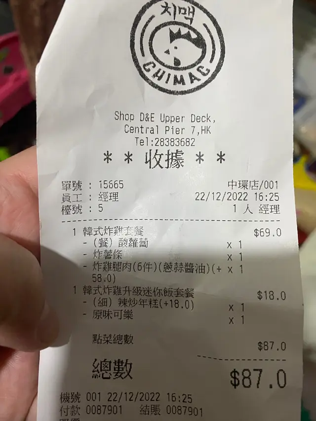 每次行過都想試下,到今日有時間去試下。一試就好失望,炸雞溫度係微溫,天氣咁凍,好快就凍晒。個辣年糕就仲衰,完全係煮過龍。一pat野,入口完全無年糕既煙un.個樽裝可樂就仲衰,完全唔係雪櫃拎出黎,室溫架,汽水唔凍唔好飲架😩…查看更多