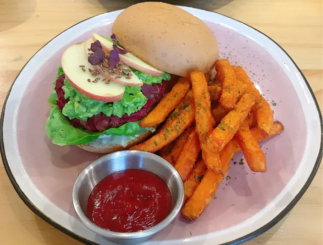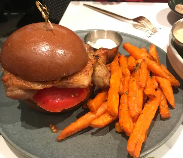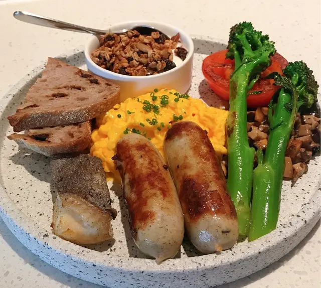 是日星期日,以為一定好多人排隊,但比我想像中快。餐廳環境非常舒適,就算我坐高枱亦都唔會覺得不自在感自在。依到都係用QR Code落單,都user friendly。蜂蜜青蘋果西芹汁 / 黑咖啡水果汁好好飮,飲得出係新鮮榨,好清爽,蜂蜜就重手左少少,甜左少許。黑咖啡就正常發揮。All day Breakfast其實同平時果d all day breakfast 差唔多,但個黑松露腸真係好好食,好香。魚就好少用到食款魚,通常都係炸魚柳,可以份量多少少。雞扒漢堡雞扒超厚,咁厚身都可煎到雞肉嫩滑真係唔容易,依方面非常出色,另外個人覺得雞扒調味方面可以再重d,漢堡飽軟淋,好食。薯條亦都炸得香脆。焦糖蛋糕非常好食,唔太甜又唔溜,面一層焦糖,再一層雞蛋布甸,再加了一層薄脆,底就係多糕,真係絕配。環境舒服,一家大細同朋友聚會既好地方。…查看更多