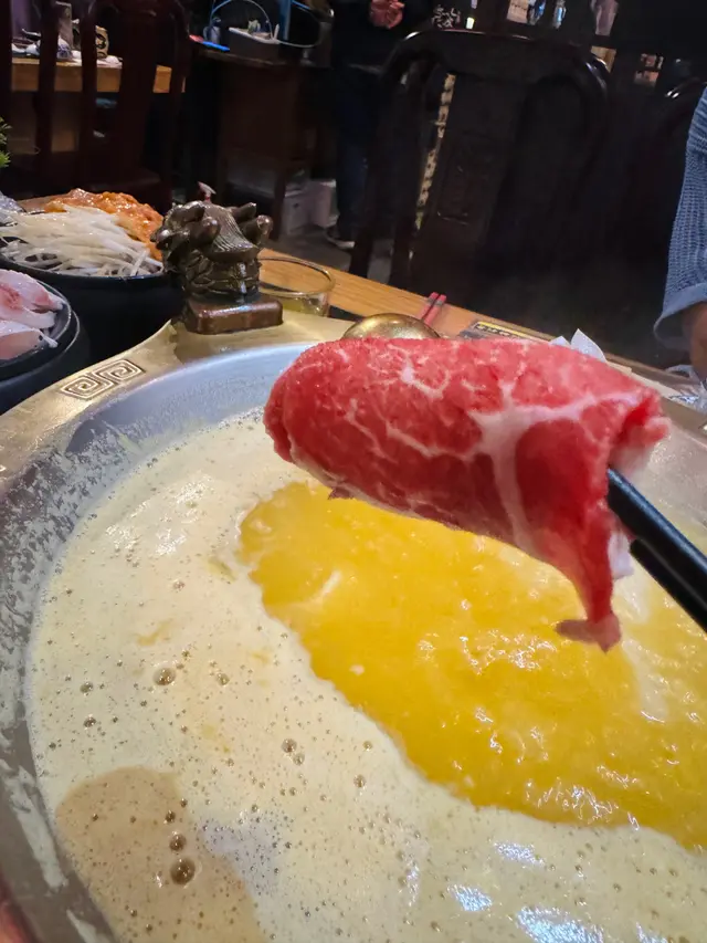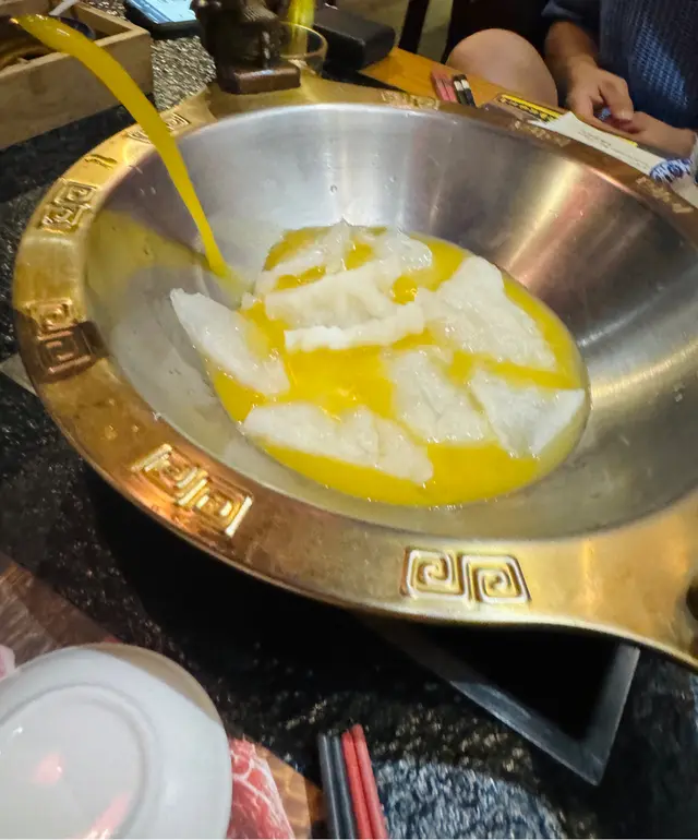 💗呢到裝修超有氣派,鍋呀鼓油樽都用中國風宮廷設計,環境適合打卡之餘,仲每上一碟菜都好值得影相留念。1️⃣大滾友牛肉拼盤(細)牛肉拼盤有7款牛肉咁多,最中意手切本地牛肉(騸牯)頸脊、手切頂級安格斯牛肉、特別係牛黃喉,口感爽脆,而兩款手切牛肉都好有肉味好濃郁!2️⃣湯底花膠雞湯鍋,以大量三黃雞熬製幾個鐘,且內有花膠件好滋潤,未落料都飲左兩碗,順帶一提雞件係八成熟上枱,方便客人自行落鍋又食到嫩滑雞件😋3️⃣伊利比亞橡果豬擺盤靚並唔代表佢虛有其表,相反豬肉無蘇味,食落甜甜地,加上花膠湯底,非常爽甜!4️⃣海鮮類分別叫咗竹節蝦、鮑魚、脆肉鯇,全部爽滑彈牙,保證新鮮!…查看更多