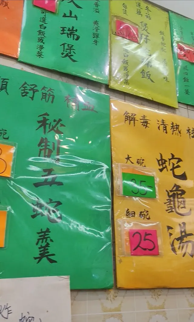 滿滿年代感,牆上掛滿舊相,環境懷舊得嚟有少少舊香港味道。叫咗佢哋最招牌嘅大碗蛇羹($88)。第一啖落去,湯底偏稀,冇咗預期嘅濃郁感,味道亦比較淡,腥味幾明顯,要靠胡椒粉同醋去腥味。柠檬葉絲同薄脆可以自助隨意加,不過薄脆較快浸腍,唔夠脆口。蛇肉切得有點太碎,混埋啲好似雞肉口感嘅肉(唔確定係不同品種嘅蛇肉,定係真係雞肉) ,都真係有點太嚡,木耳同香菇份量幾多。覺得好嘅係冇落太多味精,食完唔會覺得太口渴。總結而言,食嘅係情懷同歷史,但作為一碗蛇羹,味道平淡、腥味較強,肉質感一般,有點失望。…查看更多