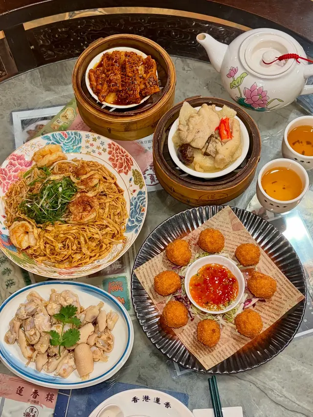 百年老字號「蓮香樓」🫖而家喺尖沙咀都開咗新店啦!仲要開24小時添!今日夜晚就同屋企人一齊去食餐飯,感受吓百年老字號嘅茶樓文化~茶樓裝修行懷舊路線,用咗木枱木椅、紅色、橙色嘅吊燈🏮、仲有舊香港字畫同霓虹燈牌做裝飾,成個氛圍好似時光倒流番咗去幾十年前嘅茶樓。最特別係佢仲保留咗點心手推車!🥧 有遮遮推住車喺茶樓度行嚟行去,俾你即場揀點心,而家已經好少喺其他茶樓見到!好特別呢~ 呢到環境闊落、裝修雅緻,坐低嘆啖茶、食吓點心,喺一個感受到「一盅兩件」嘅悠閒體驗💛👉🏻蟹籽百花蝦丸🍤💰138外皮好薄但已經好脆,咬落去好彈牙!大推!點埋個酸辣醬更加好食😋👉🏻 蝦子蝦球撈麵💰128份量好多!3-4個人share 都得!蝦球大隻又爽口彈牙👍🏻蝦子醬香氣獨特,麵條掛汁均勻,食落去好有鑊氣但又唔覺油膩~👉🏻 青芥末雞腳根💰98喺一款冷盤小食,雞腳根好爽脆,青介末帶少少辣同酸香,食落去好開胃🤤,又唔駛好麻煩咁要𦧲骨,不知不覺好快就俾我地清哂~👉🏻 北菇棉花雞💰48有冬菇、蟹柳、豬皮做配料,雞肉蒸到好嫩滑,菇嘅香味滲入雞肉好入味~👉🏻 富貴金錢肚💰48煮得夠腍,但都keep住有咬口唔會好韌,沙茶味濃郁,惹味十足~總結嚟講,呢次體驗最深刻就係茶樓帶出嘅懷舊感覺同埋食物嘅質素。雖然係新開分店,但味道同手工都好有水準,有舊式茶樓嘅情懷,唔怪得平日夜晚都喺坐滿場啦~加上餐廳係24小時營業🌙,幾時都可以過嚟坐低慢慢嘆個靚茶~非常啱我呢啲鍾意飲夜茶嘅人🥳…Read More