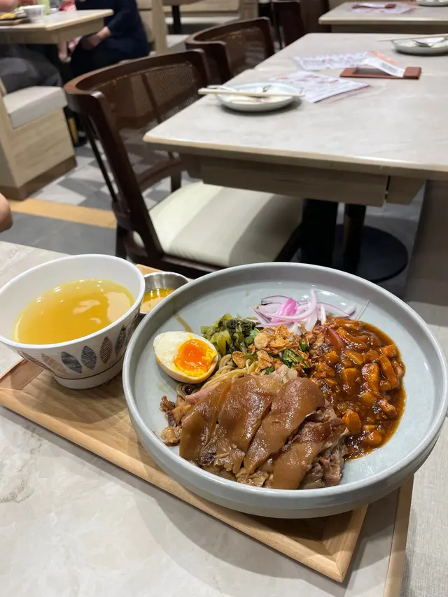 今日同朋友專程過嚟食佢哋嘅招牌菜,叫咗幾款經典茶記美食,樣樣都夠晒鑊氣! 🍗 瑞士汁雞髀撈丁 $68 雞髀大隻到差啲遮住成個碟!瑞士汁香甜濃郁,撈埋出前一丁麵啱啱好。雞髀煮到好入味,肉質嫩滑,最正係個汁撈勻啲麵,食到最後一啖都仲好夠味。 🧀 芝士焗豬扒飯 $72 焗到金黃色嘅芝士鋪滿成個飯面,一上枱就聞到好香。豬扒厚切又juicy,茄汁炒飯底夠乾身,仲有啲雜豆增加口感。芝士拉絲效果一流,每一啖都食到濃濃芝士香。 🍞 黃金西多士 $48 邪惡度爆燈!厚多士炸到外脆內軟,一切開花生醬即刻湧出嚟。面頭塊牛油慢慢融化,加埋糖漿,甜而不膩。建議兩個人share,一個人食真係太heavy。 ☕ 凍奶茶 $18 茶記靈魂所在!茶底濃滑,奶香夠但唔會太甜,同西多士係絕配。 環境方面,雖然裝修簡單但乾淨企理。午市人多但伙記手腳快,落單後15分鐘就有得食。 特別係個瑞士汁雞髀撈丁同芝士焗豬扒飯,水準好過大型連鎖餐廳,但價錢親民。下次一定會再嚟試佢哋其他招牌菜! ⏰ 下午茶時段(2:30-6:00)有套餐優惠 🍴 黃金西多士最好趁熱食,凍咗會冇咁好食…查看更多