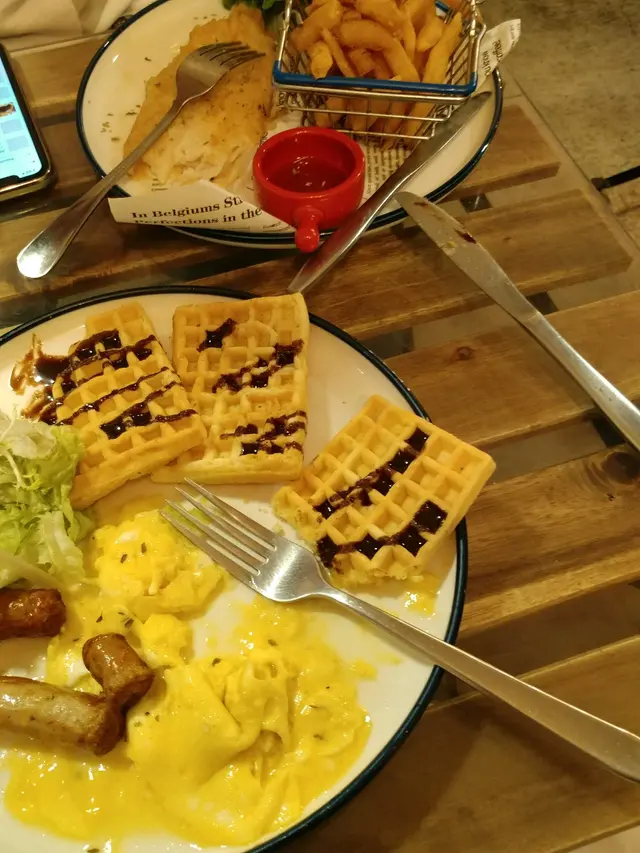 遊船河之前搵少少嘢食,知道呢度好出名,但係時間尚早仲未排隊,即刻坐低咗最出名嘅菠蘿油蛋撻加奶茶淨係奶茶嘅配置,我已經非常開心,咁樣擺埋一齊嘅感覺好豐盛,非常地道嘅感覺,餐枱嘅位置係半戶外,有一個帳篷,簡單幾張摺檯,當然唔係高級餐廳配置,但係就非常之有風味。菠蘿油同蛋撻都好新鮮,菠蘿油嘅牛油好大塊好厚,個「菠蘿」都好脆。蛋撻配奶茶係絕配,奶茶自己可以調節,茶底唔算好濃,就咁飲個味有啲似English Breakfast Tea。有機會可以再嚟。…查看更多