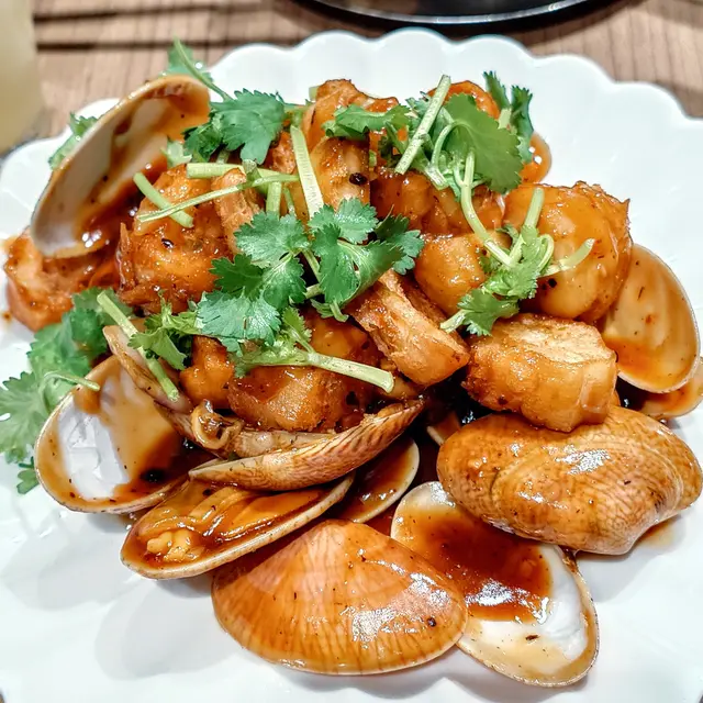 🐑豉椒花甲油炸鬼,花甲好隻隻大隻,而且好乾淨又新鮮,一啲沙都冇。特別配上油炸鬼,超鬆脆,點汁一齊食確係唔錯。豉汁獻師傅推得好靚,由頭食到落尾都能保持其緊緻度,確保冇卸水,唯一就係青、紅椒唔夠,甚至我覺得可以加啲指天椒,咁就會更加惹味。🐑大紅袍脆皮雞,用新鮮靚雞,先以茶熏香及上色,風乾後再淋油吊燒。雞皮色澤均匀,脆而不膩,夾起一塊雞肶來看,腿骨中央仍然泛紅,表示雞身生熟程度達至一個最佳食用狀態,就連最難搞嘅雞胸肉都嫰滑多汁,師傅吊燒功夫十分超班。既然係新鮮靚雞,當然係有雞什啦,以淡滷水浸煮,好入味喎。🐑臘腸膶腸鮑魚滑雞煲仔飯,臘腸、膶腸薄切,軟硬度適中,玫瑰露香味尤其凸顯。雞塊全部無骨,易於食用。米飯粒粒分明,煲底飯焦容易刮起,而且香脆,可以慳番幾十蚊,唔使搵師傅加雞湯或龍蝦湯幫手起飯焦🤭#灣仔 #美麗小廚 #脷安食道 #leionfoodchannel…Read More