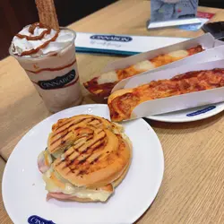 Kelsey 同爸爸都大愛肉桂卷😍平時都係食下午茶,或者食完正餐先去食甜品最近先發現原來 Cinnabonhk 係有鹹點㗎,以後就冇藉口晚飯食得太飽冇位放甜品啦😅食甜品前要食啲鹹點,所以我哋叫咗熱辣辣嘅Pizza Strips🍕分別有加拿大煙肉菠蘿同意大利辣肉腸芝士口味,全部都有濃濃嘅芝士香味🧀Pizza 嘅size啱啱好,啱晒論盡嘅小朋友拎住嚟食,條裝仲方便你地一路行一路食,真係諗得周到👍🏻另外當然要叫媽媽最鍾意食嘅Panini,不過呢度Panini嘅麵包同出面唔同,佢哋係用招牌手工搓製麵糰製作,經過長時間發酵口感非常柔軟仲帶有甜味🥰不得不提嘅係呢度嘅酸瓜,唔係一味死酸,連唔食酸瓜嘅老公都食到,大家都可以試下🍔乖乖食完鹹點之後就可以食甜品啦🤗肉桂卷分唔同size,想試多種口味嘅我哋當然係叫迷你卷啦😍一定要叫嘅係原味肉桂卷😉之後我哋就叫咗朱古力曲奇肉桂卷同新出嘅杜拜朱古力卷🍫 杜拜朱古力卷係開心果knafeh醬配上朱古力內餡,每啖充滿住濃郁嘅開心果朱古力,而且仲要食到脆脆嘅開心果,切開嘅時候朱古力醬仲要流出嚟,真係見到都開心❤️飲品方面,Kelsey 見到CHURRO CHILLATTA,用咗半條Churro嚟blend成smoothie,滿滿嘅Churro味,勁啱Kelsey 😉媽媽就要咗個鮮榨檸檬梳打咖啡醒吓胃,爸爸繼續試新嘢- Iced pistachio latte ,開心果同埋Latta 原來可以咁夾❤️仲要飲落每啖都有開心果粒粒,爸爸超開心。 最後因為已經食飽飽,結果都係買返四個mini Cinnabon 返屋企慢慢嘆😅…查看更多