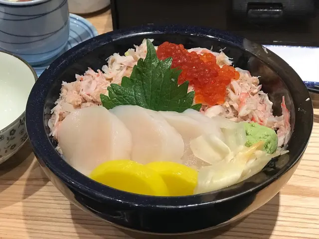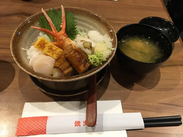 中午尖沙咀食飯度度都好爆。但係實在太肚餓啦,吾想排隊…甘岩見到依間野食ok價錢合理又吾洗排隊,就入左去食😝環境都舒服,服務又幾好有禮貌👍午餐選4種魚生飯就$59,選5種魚生飯就係$69,仲有味噌湯。而飯可選白飯或壽司飯。價錢真係好合理…我就叫左帆立貝,鰻魚,松葉蟹棒,火炙左口魚邊配壽司飯。帆立貝有兩隻,一隻就正常size另外一隻就係細size,見到兩隻帆立貝大細唔一樣感覺上好似蝕左咁😞不過帆立貝都算新鮮。鰻魚就正常。左口魚邊比較碎用筷子一夾容易散,不過味道幾好。松葉蟹棒比較失望冇咩鮮味。不過係尖沙咀以依個價錢同服務同來講都算合格。…查看更多
