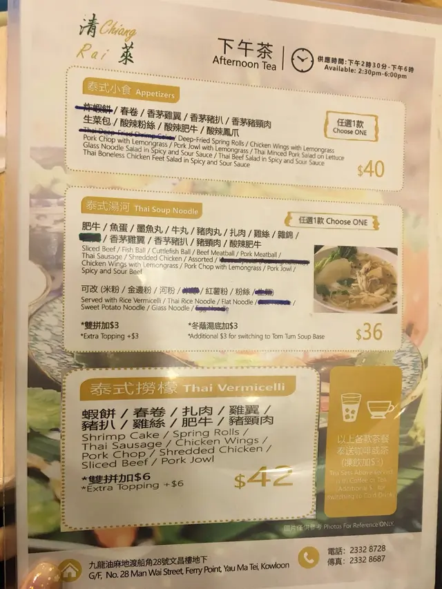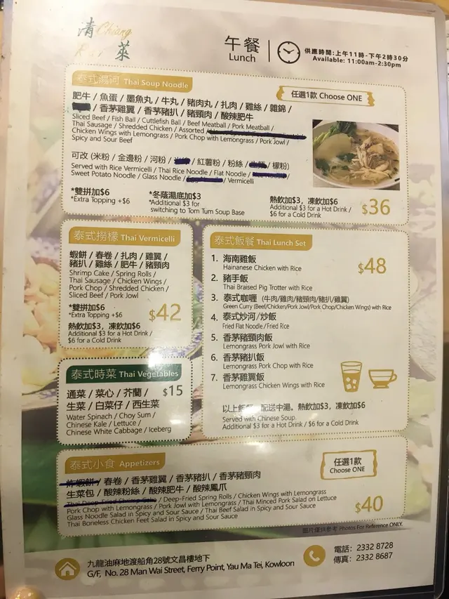 係附近做完野,順便食返個午餐。見到佢價錢合理環境乾淨就入左去…入到去侍應叔叔已經好有禮貌甘招呼,倒左杯檸水😮平時其他餐廳都係倒杯水,估唔到依間餐廳咁有心👍研究左一陣發覺下午茶同埋午餐嘅餐牌價錢係一樣,唯一唔同就係下午茶會送杯嘢飲🤣豬扒好淋又夠味,最有驚喜嘅係白蘿蔔吸晒啲湯嘅精華好入味😋嚟到泰國餐廳梗係要加佢個辣椒粉啦,不過加咗辣椒粉反而覺得冇咁好味。依間餐廳應該係泰國人開,我見大部份員工都係講泰文。…查看更多