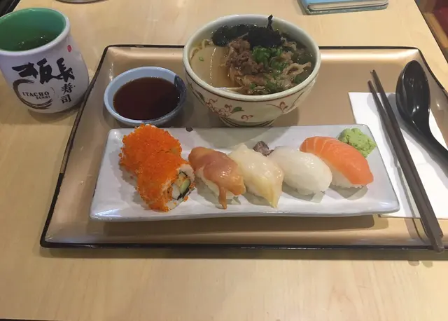 諗住食個好d質素ge壽司,因為得一個鐘時間,最後都係係附近食板長算…印象中都覺得質素幾好🤔Lunch hour都好full,好彩等左一陣就有位!一坐低,侍應就放低個iPad 俾我點餐。真係吾鐘意用佢黎落order, load得好慢用得好辛苦…我見有人想叫侍應手寫落單,但侍應都係叫佢地用返平板落單。強烈建議板長換過批平板,一係就人手寫落單🙄叫左個牛肉烏冬同壽司set lunch…烏冬係扁,吾會太淋,牛肉份量都幾多👍壽司就正正常常…另外,追加劍魚南壽司。一黎到,失望到極點。吾係瓜,甘樣ge look都拎得出黎,爭鮮樣都靚仔過佢啦😤一食落去有根,d肉霉霉地😭如冇必要都吾會再幫襯😞…查看更多