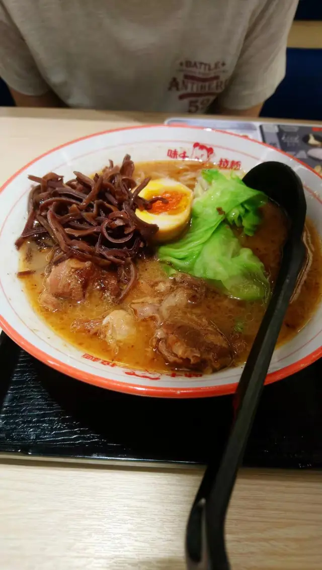 二天沾麵配濃厚豚骨湯呢款係由豬骨+小魚乾+蔬菜煮成, 味道想像唔到佢竟然可以咁濃味, 對我呢d食開淡味的人, 覺得佢係濃到有少少"kwok"喉, 不過鍾意濃味果d人就啱哂~ 好彩佢唔係淨係用豬骨同小魚乾去煮, 仲有加埋d蔬菜, 咁樣感覺上好似冇咁罪惡感, 話哂有蔬菜~ 佢味道雖然係超濃, 但我覺得絕對係真材實料, 因為食完之後唔會口渴, 雖然食果陣係咁飲水, 不過係我地唔食慣濃味啫~沾麵依然係用我地最愛的坑紋麵, 咁樣先係可以真真正正做到沾麵掛汁的功效, 麵質冇變, 依然咁彈牙, 超正~