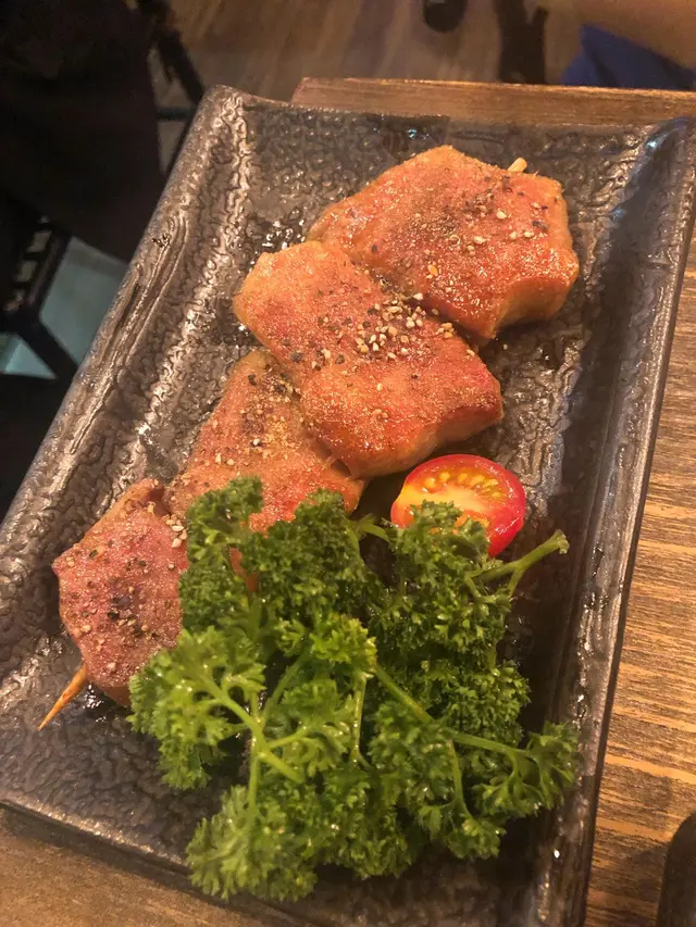 Upon looking at the entrance you would not think that there exist a bbq place inside apart from the sign at the entrance since it is inside a small alleyway. However once inside it seems quite popular as I saw some people being turned away without reservation. So my advice is to book ahead.Anyways onto the food. We ordered Tamagoyaki (Japanese egg omelette), Japanese sweet potato, Chicken wings with stuffed dumpling, Eel Japanese style, Eggplant with garlic, Lamp chops (New Zealand) and Ox tail. Tamagoyaki (Japanese egg omelette)Came in 3 square pieces, a slightly sweet strong egg taste. You get this quite often in Japanese sushi places however this one is less sweet and with more egg taste. Japanese sweet potatoCame in small little pellets, each one super sweet tasting and soft, which melts in your mouth with a buttery taste from the butter. I recommend you order this, you won’t be disappointed. Chicken wings with dumpling fillingI burnt my mouth upon biting into this, came super-hot. It has a filling on the end of the chicken wing the filling tasted like meat that is slightly spicy with a small hint of Kimchi taste. Quite unique, if you like Kimchi and want to try something different then give this one a try. Eel Japanese styleSame you get everywhere. Everywhere you go this dish tastes the same. Same texture and same sauce so nothing bad nor special. Only order if your really craving this. Eggplant with minced garlicThe eggplant came and it was topped with minced garlic and pork floss. It was done quite well, the eggplant was easy to tear apart, very soft. I love garlic but for people that don’t or they scare their breath stinks next day then avoid. Ox TongueThis is my favourite dish of the night. Sometimes places do not cut away the outside or cut very little of the outside of the ox tongue so they can present it as being bigger or to sell more. However without cutting enough away it is very chewy. This was done perfectly and the texture was just great. Not too chewy but not too soft just right. Like a great tasting juicy piece of steak without no fat or chewiness. Lamp chops The lamp chops came and they looked like usual lamp chops however it was very tender and flavoursome. Plainly done but the meat taste is already very good. Overall I think all the dishes were great in their own way however I especially liked the Japanese sweet potato, Lamp chops (New Zealand) and Ox tail. They were very very good.…查看更多