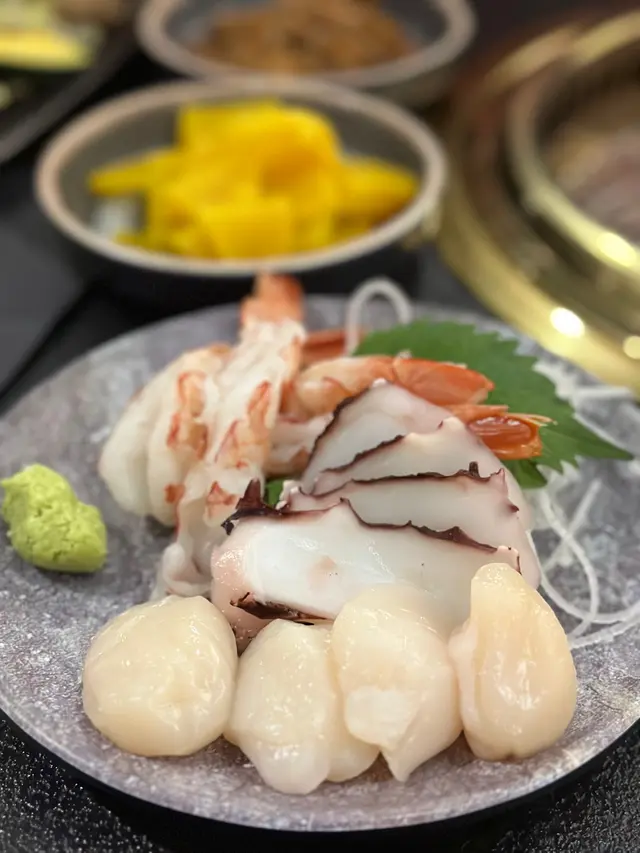 同老公撐枱腳再黎食過~因比佢環境完全吸引.環境好寬敞, 裝修又靚好似置身日本咁!! 而且坐幾耐都唔會有人趕你,而家d速食文化,想慢慢嘆下都難但這裏就完全適合想慢食談心既你~服務態度又好裝修打卡一流~同家人或閨蜜黎都好適合我叫左個588 二人套餐..好豐富.有海鮮又牛,而最讚係牛粒入口即溶..性價比高。 之後再叫左杯 潽梅香解膩。