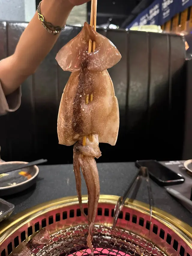 原條魷魚燒!勁yummy!!!好新鮮~大大條好抵食!牛油燒蠔,蒜蓉燒菇~好juicy~保存到汁,又唔會直接燒咁乾,真心好正佢個薩摩赤雞都好嫩,無雪味~掩的味道很不錯跟住就係我地大讚既牛粒了~燒到6分熟岩岩好~最後最後!原來佢套餐有7折 .單叫就85折..下次黎要試下佢既活燒白幔魚