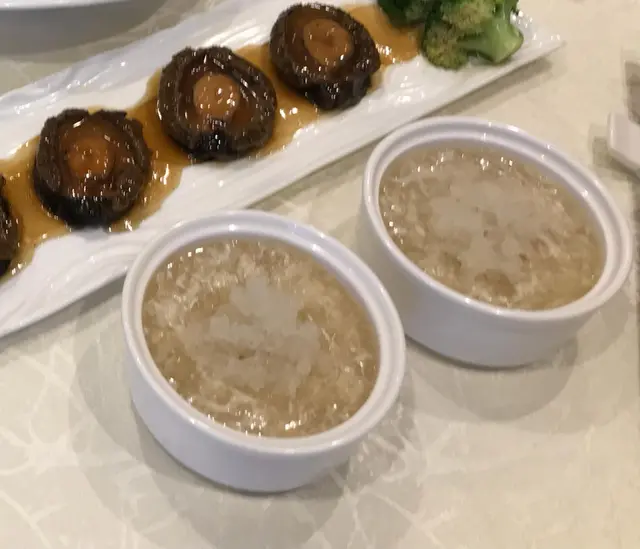 超好食,勁多肉。隻鉗超大隻,肉汁爽甜,鮮味十足。呢碟鮑魚勁大碟,每人兩隻,糖心鮑。有咬口之餘唔韌。加上濃濃的鮑汁,更突顯鮑魚既鮮味。一定要既係呢度既燒鵝放題。係任食!燒鵝卜卜脆,皮薄,肉厚,熱辣辣新鮮上枱,上菜先火熗燒過,必晒d油香。入口更香脆。真係要早啲黎。食到8點幾已經無晒貨。勁搶手呢個好飲,蟹肉夠多。牛肋骨,醬汁唔錯,爽口彈牙籠仔蒸雞飯,飯香撲鼻,要上枱已聞到濃濃飯香,雞肉既肉汁冬菇既香氣已完全滲入飯中,一定趁熱食,香氣起口中回盪。食到個肚滿晒之際,桂花糕上枱。超級清新!非常解膩。有兩層,奶凍果part 同糕點完美結合! 超正,哈哈。如果係桂花糕放題我都ok . 哈哈😄…查看更多