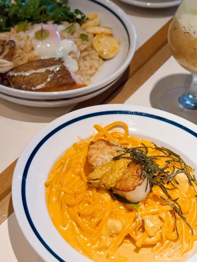 喺葵芳嚟講The Pantry應該係我至愛餐廳💕食物選擇多 又啱我口味🍽️ꕥ Sea Urchin & Scallop Linguine 一嚟就食咗件海膽先 幾鮮甜😆帶子唔算大粒 不過熟度啱啱好 鮮嫩~意粉軟硬適中 醬汁亦都好Creamy 中間仲混咗啲蟹肉 令鮮度提升ꕥ Salmon Risotto Bowl 三文魚煎得好香 外皮脆脆地 肉質緊實🐟配菜有羽衣甘藍/玉子豆腐同本菇 飯嘅調味係美珍梅子 仲有隻溫泉蛋可以拌勻啲飯一齊食 濕潤得嚟又唔會影響飯嘅口感🥄ꕥ Spicy Wings係單骨雞翼嚟嘅 食起上嚟非常方便🐤外層鬆脆 入面依然有肉汁 真心正💕有兩款醬汁可以點 燒烤醬同沙律醬 沙律醬個味道有少少似酸忌廉 配炸物好適合飲品方面 推介大家嚟到可以試下Milkshake Coffee Float🍹我哋揀咗Mint Choc 薄荷朱古力味好香濃 整體唔會太甜 另外點咗杯Hot Cappuccino 都好啱口味啊…Read More