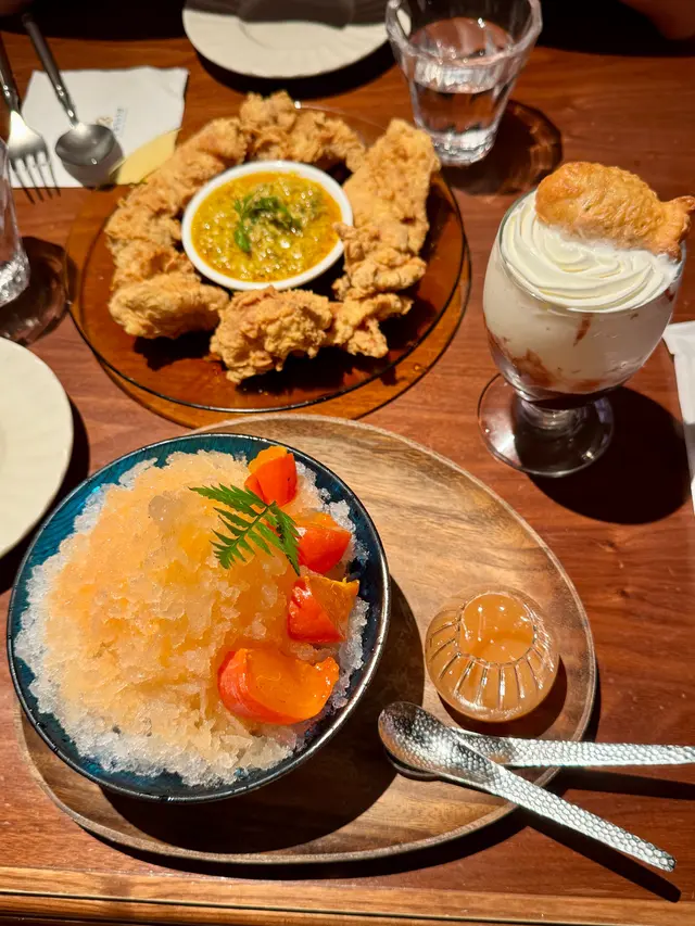 第三次来了已经,日式cafe还可以吃正餐,下午茶,选择超多的,都是walk in随便吃吃,味道和出品都很不错诶,这次还出了大闸蟹主题的食品,我试了一下大闸蟹酱汁炸鸡,酱汁有点油,不过味道鲜美的呀!哈蛮不错😌👍🏼对像点的猪肉汉堡,也很好吃欸!我们还点了柿子冰沙,冰不是很软,不是绵绵冰….冰沙一般,不如外面的冰店…..鲷鱼烧红豆咖啡奶茶味道好吃😋但是鲷鱼烧形状和图片区别有点大!menu上面的鲷鱼烧好可爱精致哦….实际有点丑的….幸好味道不错👌呜呜🥹不知道开饭上面预定有折扣的…查看更多