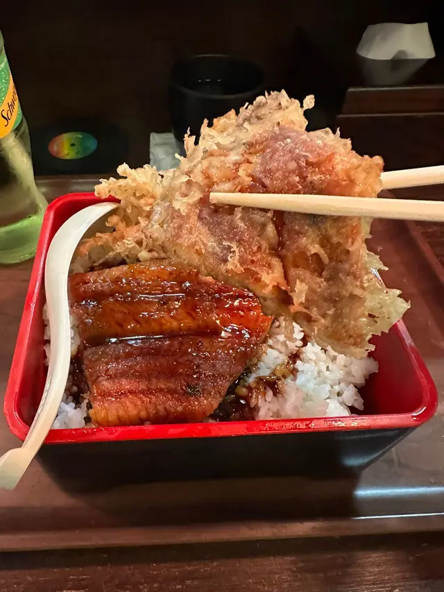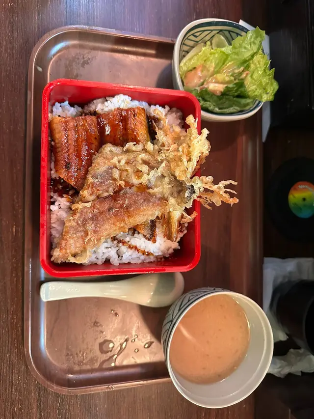 鴛鴦鰻魚丼飯 $98第一次食鰻魚天婦羅😻皮好脆好薄,唔會太油膩,食落仲食到鰻魚啲油脂,值得一試海鮮天丼 $88丼入面有黑虎蝦、帆立貝、那歌魚、蟹柳、本菇、紫菜同四季豆嘅天婦羅🫶🏻黑虎蝦幾大隻,食落好夾彈。那歌魚係自家製嘅魚餅,質地好彈牙,調昧幾好!成個丼嘅份量都好多,好抵食!原隻軟殼蟹天婦羅🦀 $68軟殼蟹炸至脆卜卜,蟹香濃郁再搭配埋蟹籽同沙律醬好惹昩整體餐廳食物質素唔錯而且價錢好合理,可以同朋友一齊嚟試下…查看更多