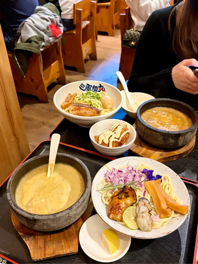 成日經過都見好多人食緊,今日行完k11就去左食,好彩排左5分鐘就有位,環境木系裝潢位置都多,不過繁忙時間就可能要搭枱。12點見到仲滿座😂。@fuunmaruhk-💕 「期間限定❣️」蜜棧金蠔.炙燒牡蠣沾麵 $168麵🍜可免費選200g /300g |溫🔥/冷❄️👅好味指數:7/10麵竟然可以揀200g/300g😳貪心既我原本想揀300g,好彩冇😂女仔建議200g就好,沾麵口感煙韌到小似烏冬😛,面層鋪左洋蔥粒、金蠔、炙燒牡蠣、荀、一片檸檬,石鍋沾麵一岀餐就滾到「滋滋滋」,店員話趁依個時間就要放粒檸檬🍋落去攪拌煮岀個香味清新感,湯底蠔味岀得黎唔油膩唔腥,帶微微清香又唔會酸左。蜜棧金蠔微甜口感,冇雪藏味⛄️。-💕 石燒濃厚豚骨魚介味玉沾麵 $121麵🍜可免費選200g /300g |溫🔥/冷❄️加配+沙拉唐揚炸雞(2件/$18)👅好味指數:8/10湯底同樣加上檸檬🍋攪拌,豚肉味>魚介味,再加多份清香感,質感醇厚,豚肉厚肉唔肥,糖心蛋流心效果👍🏻。沙拉唐揚炸雞,夠哂大件😚外脆內軟,唔厚粉唔多肥膏又好juicy🩷。-環境:8/10服務:8/10整體味道:8/10回頭率:8/10…查看更多