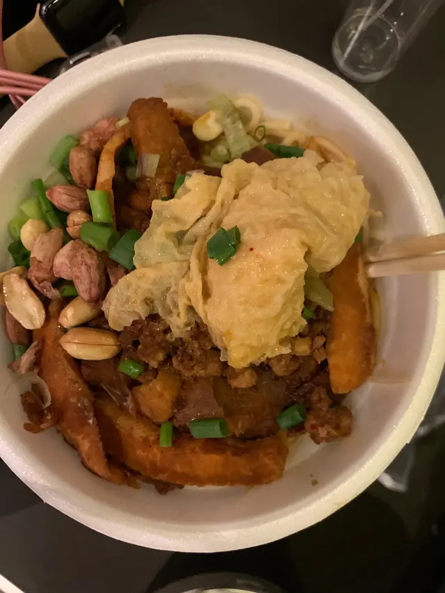 話說嗰日咁啱想食米線,就用外買平台app去買了川味美食,送嚟嗰時仲熱辣辣,我同朋友一個買咗撈米線,一個買咗薯粉。撈米線就嗌左豬頸肉腩肉,薯粉就嗌左響鈴同腩肉做餸。兩個都係有少少辣,但其實我同朋友都係我唔食得辣嘅人,少少辣呢其實係好辣嘅程度,所以如果食唔到辣嘅朋友,最好就叫唔辣,因為本身腩肉已經有足夠辣味。餸嘅份量一點都不吝嗇,而且配料10分充足,花生,蔥,肉碎都好足夠,薯粉嗰碗一開啲湯就嚟要倒瀉。雖然薯粉和湯沒有分開上,但係每一條薯粉都吸晒酸辣湯嘅味道,所以食得好過癮,又酸又辣十分起勁。最緊要係窮人恩物,兩碗唔使100,簡直係月尾打工仔嘅福音。…查看更多