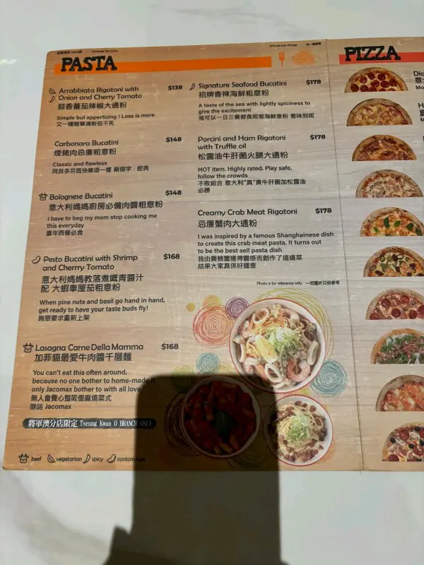 幾好的意大利餐廳 JACOMAX 2025-05-17慕名而來的,而家成日睇YouTube都見到呢個老闆,諗住有嚟試吓。入到間餐廳,裝修都幾得意,本來職員叫我哋坐門口嗰張,我哋企喺度猶豫咗一陣,經理就話入邊都有位,原來入邊仲有好大,坐低咗卡位,後面仲有一間房,餐廳寬敞闊落。我哋叫咗一個芝士四重奏pizza, 炸魷魚圈配他他醬,加菲貓最愛牛肉醬千層麵。三個人,食到一半覺得唔夠,即刻加多一個T-Rex pizza.芝士四重奏pizza: 芝士味當然好重,我係芝士愛好者,啱晒! 薄批應該係意大利傳統批,不過對我嚟講,唔夠飽😅炸魷魚圈配他他醬:魷魚圈竟然好腍,唔係好有咬口。不過張粉黐住魷魚,唔會好似有啲餐廳可以分體食。加菲貓最愛牛肉醬千層麵:都係多芝士,始終肉醬同闊條麵係好夾,冇得輸T-Rex pizza: 呢個Pizza偏辣,好似比其他西餐嘅辣肉腸辣一點。比較濃味。…查看更多+ 5以上食记乃用户个人意见 , 并不代表OpenRice之观点。赞好分享幾好的意大利餐廳 JACOMAX https://s.openrice.com/QrLT0C3rS00检举 张贴 评分5味道5环境4服务5卫生4抵食用餐途径堂食