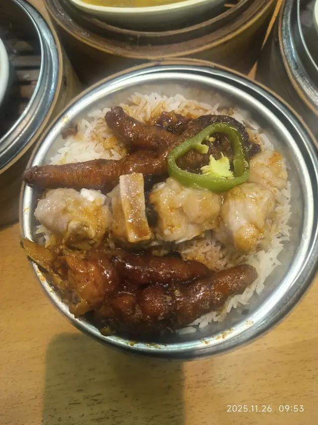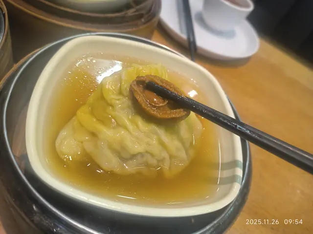 見到TVB節目介紹此店,便特意由屯門出來一試,由於早上9至11乃$40孖寶供應時間十時前就到達,雖然店內接近座無虛席,也幸得三人坐的卡位,是個美好的䦕始。先來的是鮮蝦腸粉,用上的是大号中蝦,粉皮軟中帶靱豉油算好味,唯是有點放凉不美;之後來的是牛肚熱焫焫,每件都十分柔軟入味,用上芋頭條㙯底索汁又是絕配;再來的雞扎驚喜則是用上真肉叉燒而不是假肉的火腿,顯貴得來有益味更佳;盅飯料是鳳爪排骨,size特大之餘料較茶樓的多;最後說到魚翅鮑魚灌湯餃,真的含所述那些紓貴的材料,此外肉和蝦的餡料也很多而湯底咸鮮度亦十分好,真不愧為旗艦產品。整餐三人吃3x孖寶才$135論地王級租金及食品高質素真的夫復何求!順帶一提此店有每位$40的最低消費額及結賬只收現金。…查看更多