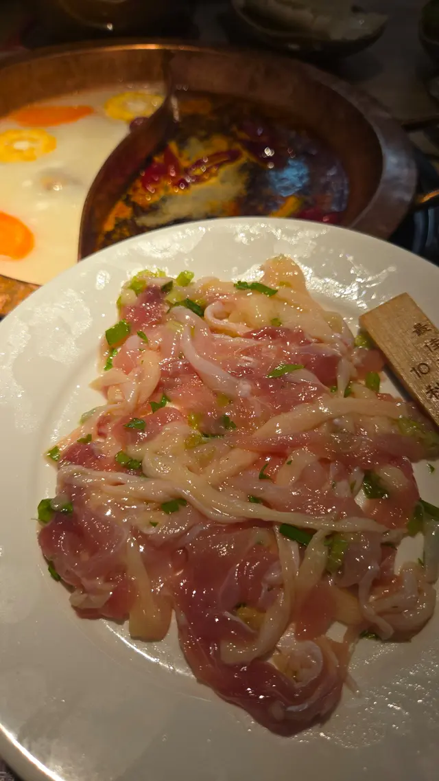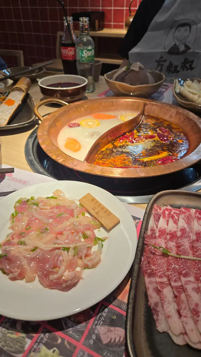抵食重慶老火鍋二人餐(仲要連加一)套餐包鴛鴦鍋底任選九款邊爐配料兩款蔬菜、一主食仲有甜品同飲品 🍲🔥鴛鴦鍋底 -麻辣配大骨滋補鍋鴛鴦鍋設計超貼心,一邊清甜鮮美,一邊麻辣過癮。更值得一讚嘅係湯底以不同辣椒香料淆製,濃味得黎完全無用香精,食完不會好口渴,最神奇係食左兩個鐘衣物都無打邊爐嘅異味,健康又不失風味 🥩葷類任選九款美國Prime特級牛胸腹入口即化,油花豐富卻不膩 嫩嫩嫩牛肉片薄切鮮滑,涮幾秒就熟 紐西蘭精品羊肉卷彈牙多汁,配麻辣湯超吸味 鮮鴨血和屠場鮮毛肚Q彈有嚼勁 重慶炸酥肉外脆內嫩,麻得過癮,越食越停唔到口 手打魚籽蝦滑彈牙,鮮黃喉和鮮切清遠雞也新鮮到爆,清遠雞切幼條爽脆嫩滑 🥬蔬菜簡單卻精緻包漿豆腐吸滿湯汁,軟嫩入味;霞浦海帶苗脆爽解膩,平衡了葷食的豐富 🥢主食彈滑稻庭烏冬 🍧甜品紅糖冰粉清涼甜蜜,解辣神器 飲品汽水(樽裝加分✨) 整體黎講,今次食重慶火鍋從湯底到配料都非常突出同新鮮,吃完輕鬆不脹氣。銅鑼灣這新環境加分,絕對值得再試!🔥🍲…查看更多
