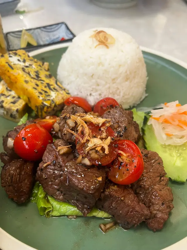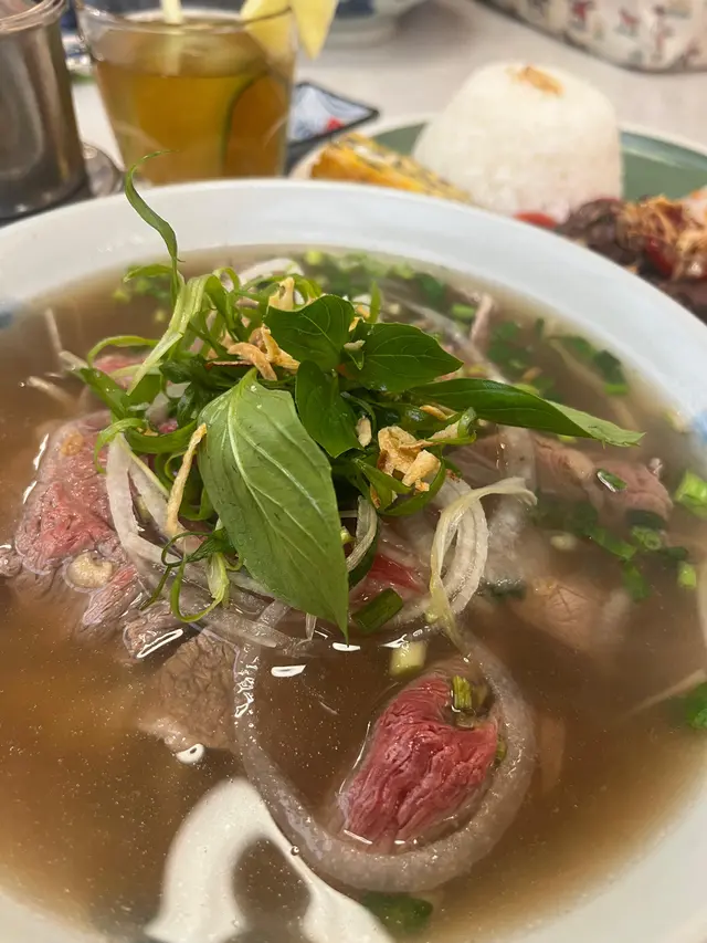 最近去左沙田呢間越式餐廳,餐廳裝修走年輕文青風,淺木色傢俬配藤織吊燈,打卡位十足。最驚喜係佢哋嘅卡座,軟墊厚身又寬敞,坐足兩個鐘都唔會腰痠背痛。重點推介$56下午茶套餐!包主食+飲品,呢慣價錢在現今真係買少見少。招牌〈越式生牛肉湯河〉絕對係靈魂之作——湯底每日用牛骨熬足8小時,飲第一啖已經被濃郁牛香擊中!生牛肉片薄如蟬翼,用熱湯輕輕澆熟,入口嫩滑得嚟帶淡淡粉紅色,配埋金不換同芽菜,味道層次爆燈!另外試咗〈法色牛柳粒配米飯〉,牛柳粒外層微焦,咬落肉汁四溢,伴碟嘅蒜片炸得金香脆口,撈埋珍珠飯食簡直無得頂!套餐跟埋杯越南滴滴咖啡,香濃回甘完美作結。…查看更多