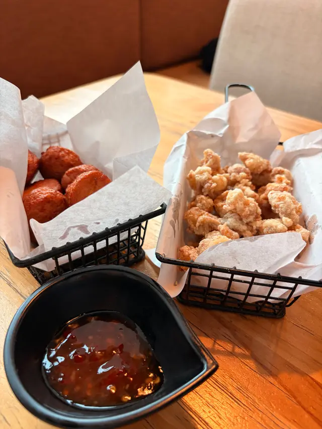 之前同朋友嚟食過晚餐,今日lunch time比較充裕啲時間,所以同同事揀咗呢間,今次可以慢慢嘆!!環境一流,而且空間感十足,兩個人都俾你坐四個人嘅卡位,坐得好舒服!最重要係冷氣好足,又播住K-pop,有種錯覺去咗韓國咁🤣玫瑰牛肉砂鍋湯麵 $128呢個係一個午餐set,所以仲有湯,四個前菜,飲品🤭性價比高咼😘個樣睇上去好creamy,係有奶白湯咁,但食落一啲都唔heavy!麵質好正,係粗粗地又有咬口!!不過建議如果鍾意食,晏啲就要早啲食,因為石頭鍋令到佢會繼續有煮緊嘅效果😂牛肉都好高質,肉紋好清晰!唔會太肥👍🏻八爪魚煎餅 $138超好食!煎到外脆內軟,同埋有啲蔥喺度令香氣味道增加💕八爪魚係粒粒,唔會太難咬!佢仲配咗兩個醬,紅色嘅係甜酸辣都有嘅味道,好得意!黃金蒜香炸雞 $198去韓國餐廳點會唔食炸雞😆呢個係佢嘅招牌菜!蒜香味十足,唔會太過肥膩!仲有檸檬減肥膩感😌側邊仲有啲蝦片同番薯條,都幾飽下芝士蟹子蛋捲 $135蛋捲上面有茄汁同芥末汁🤭入面包住勁多芝士同蟹籽🥶好鬼正!!!一啲都無手軟,落超多呀!!!!…查看更多