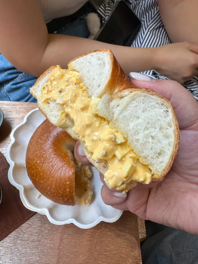 📍Midnight Bread ClubHad my eyes on this popular bagel shop and finally a sunny weekend to get to Tai Hang to check it out. It opens at 11, we arrived at 11.10am and it was packed full of people. As the space is quite limited, it does take quite a while for each customer to order, pay and served. We were lucky enough to get a seat inside but be prepared that it is very small and it is very unlikely for you to grab a seat insides. One drink per person which is reasonable. The drinks were fine. For the bagels, we tried their cranberry cheese and egg salad bagels. I liked their bagel texture. They do have the crisp for the outer layer after being warmed. The cheese doesn’t have any cheese pull but it does have a good cheese taste. The egg salad is yummy but it’s very not eating friendly! The egg salad basically drops everywhere, especially with the chewy bagel texture, it’s difficult to eat. Love their honey miso cream cheese! A must add! Staff are super friendly despite being very busy! Next time I think I better buy for take away so I can reheat it at home to make a crispier texture. Price: HK$100 pp Revisit: 8/10…查看更多