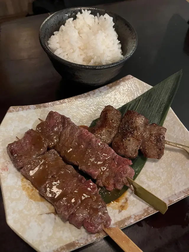 晚市就黎得多,試午市真係第一次。依道午市定食性價比算唔錯,除了前菜、麻醬豆腐仲有miso soup, 都算幾抵食架!首先我們點了串燒牛肉定食,套餐包括牛舌和鹽燒牛肉。厚切牛舌厚度夠厚,一d都唔慳皮。火候掌握得恰到好處,口感彈牙多汁,每一口都令人垂涎三尺,真係冇得彈呀🥳再者係特上6品,係一個6款串燒既set,分別有鹽燒牛肉、牛舌、鯰魚、秋葵、雞翼、冬菇。串燒新鮮即燒,真係要再讚師傅既手勢,每一串燒得都剛剛好,呢個set絕對推介俾大家點!…查看更多