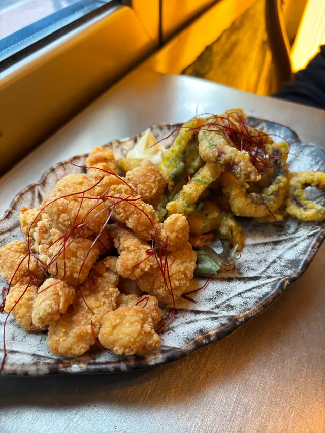 餐廳以電影《唐伯虎點秋香》為主題,裝修都好有心思,氣氛唔錯!揀咗二人餐,頭盤係日式味噌湯,湯頭濃郁,配上五色海藻,酸酸甜甜,口感清新。威士忌燒蠔,保持蠔既鮮味。炸物拼盤揀咗海苔魷魚天婦羅同鹽酥雞,外脆裡面魷魚仍然多汁,鹽酥雞香脆入味。串燒盛嘅牛肋骨同日本黑豚肉味道香濃,京葱煙肉卷,都唔錯,仲有配搭菠蘿解膩主食鹽燒白鱔煲仔飯,飯粒粒分明,白鱔鮮嫩肥美!同埋底有香脆既飯焦甜品係朱古力布朗尼,甜度適中飲品點咗柚子菊花茶,清新菊花香氣。仲有呢度有唔少特色既cocktail,試咗一杯華夫人,係威士忌柚子氣泡酒配玄米茶奶蓋,味道唔錯,配串燒一流!…查看更多