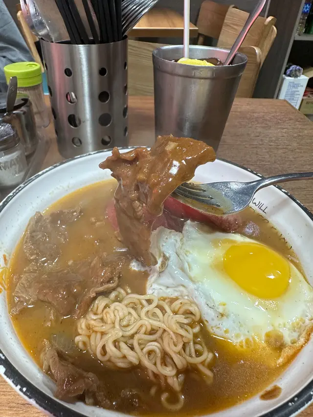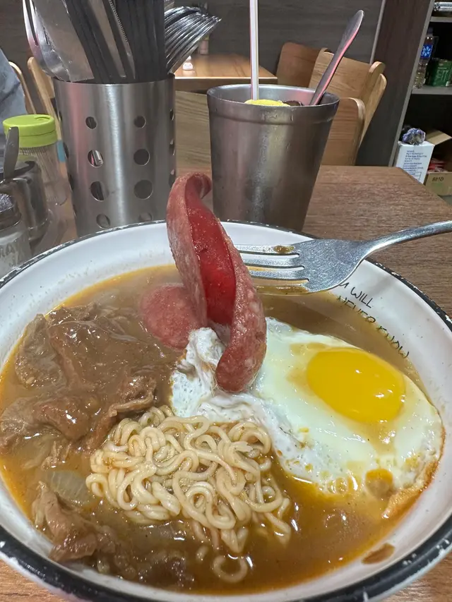 荔枝角 #沙嗲牛肉麵 名店「#好好運快餐店 」,果然名不虛傳,超濃沙嗲汁,重花生味,帶少少甜,微辣。牛肉肉質一啲都唔柴口,處理得好好。紅腸厚切,口感勁正😍沙嗲牛肉最襯都係公仔麵,公仔麵灣曲的麵身,好掛汁。#百搭早餐 (任選三餸)$41正常茶餐廳格局,座位唔算迫,而且仲保留隔板保持衛生及私隱度。價格與附近茶餐廳相約,屬正常水平。…查看更多