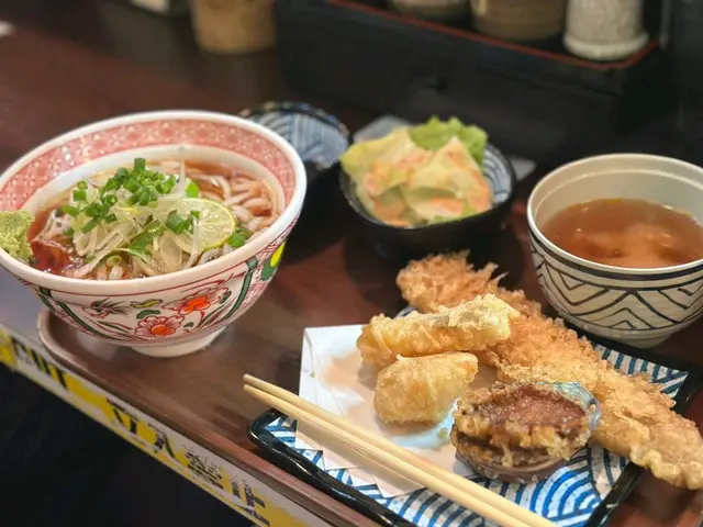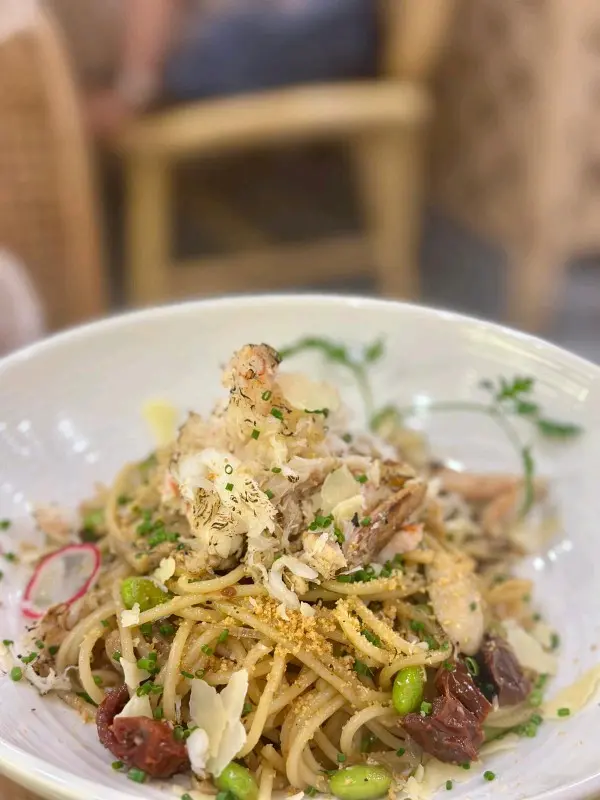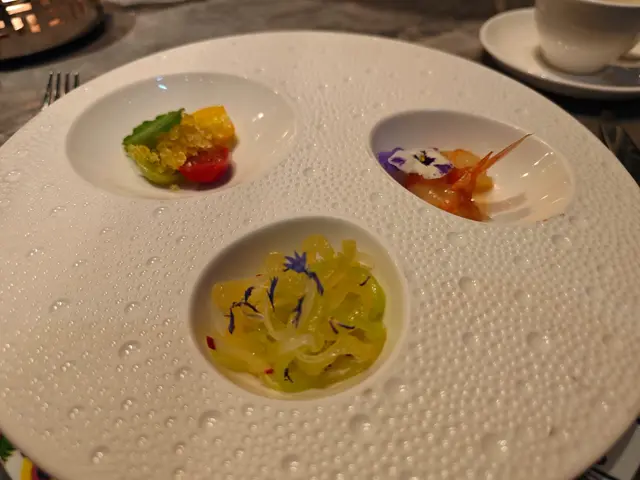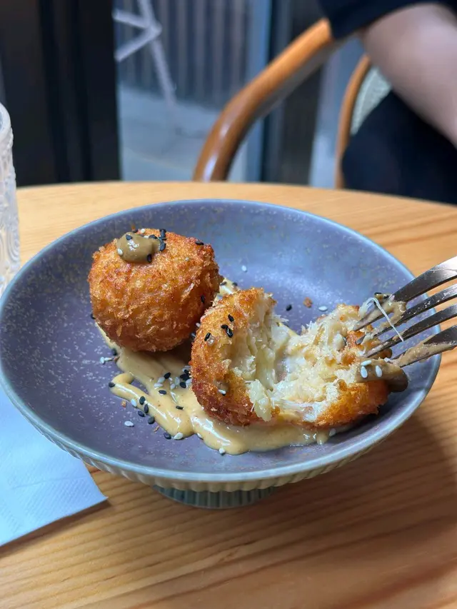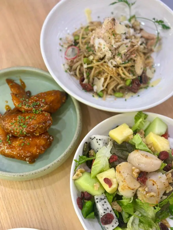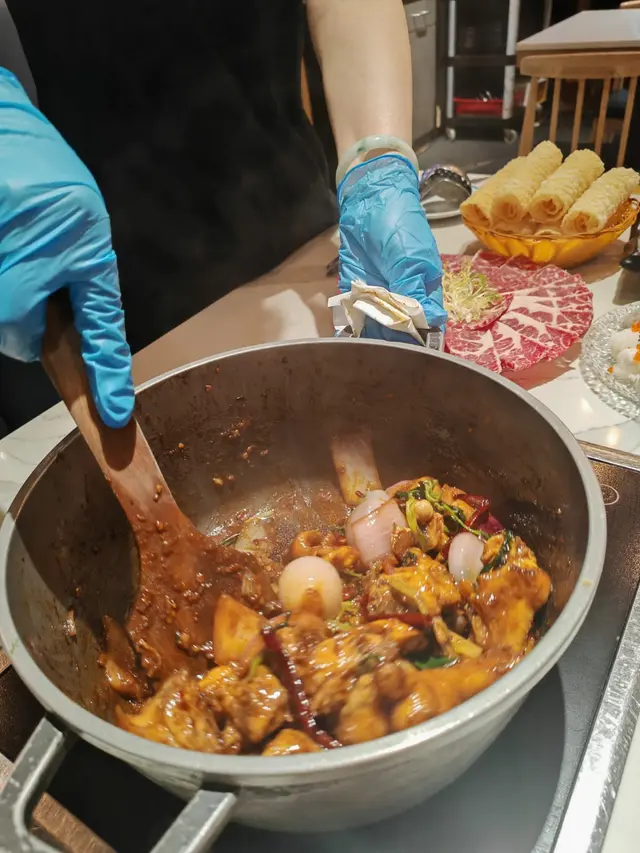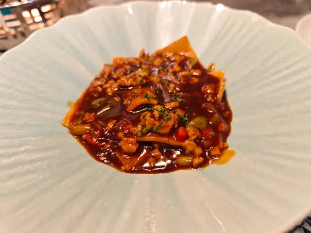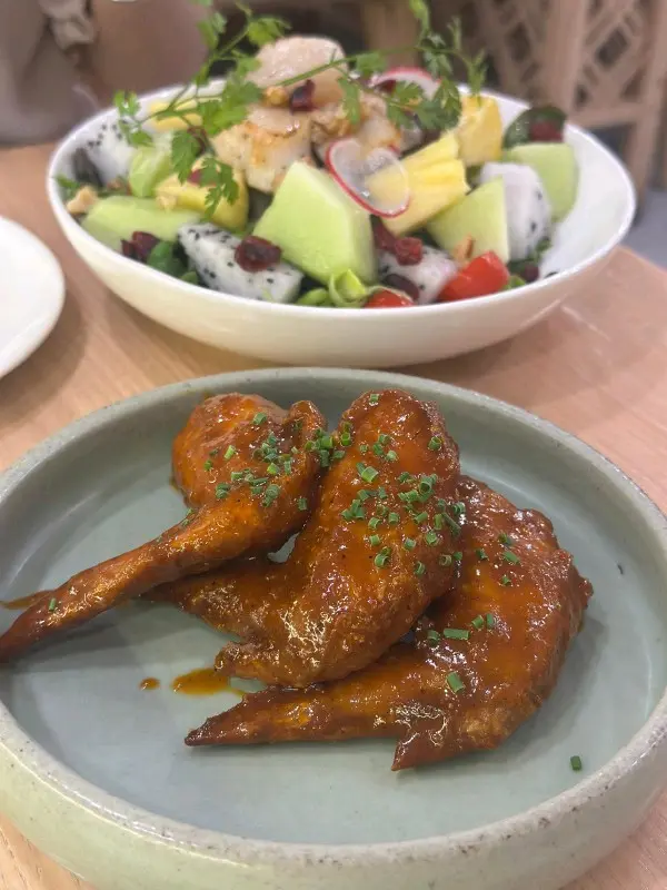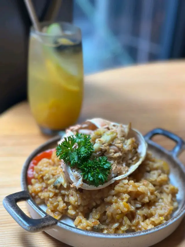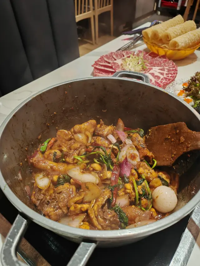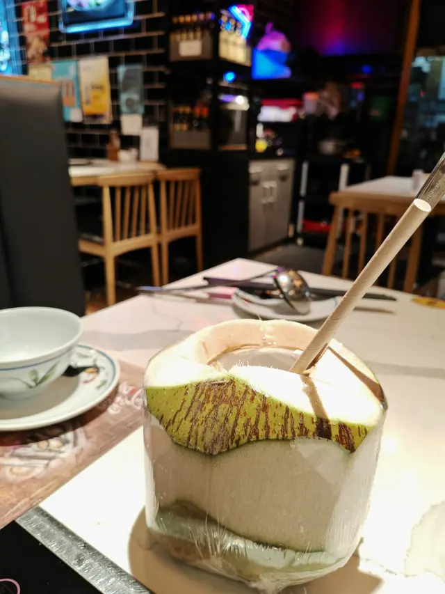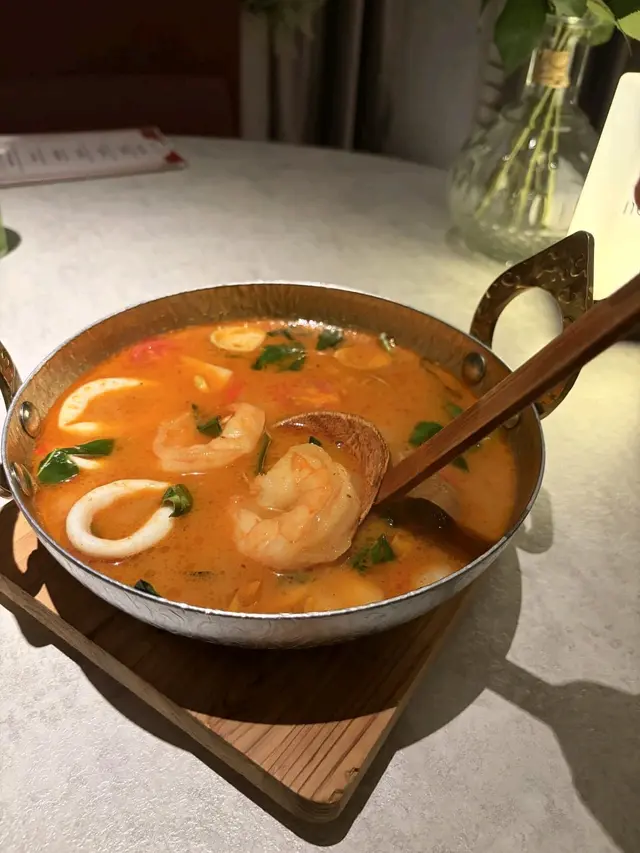 今晚終於搶到位去咗呢間網紅泰國餐廳,成間裝潢西式泰風混搭,金色燈光柔和又奢華,影相打卡100分!即刻同大家開箱今晚嘅驚喜~🦐泰國青醬鮮蝦刺身鮮蝦超大隻,彈牙得像喺海邊即剝!青檸辣椒醬酸辣醒神,一啖一個停唔到口!🍲泰皇海鮮冬蔭功湯湯頭酸辣甜香四重奏,完全唔係街邊貨色!大蝦、帶子、青口、魷魚全部新鮮彈牙,零冰鮮味!🥩香脆和牛頰肉和牛頰肉炸得外層薄脆,咬落去即化,油脂香氣爆棚但完全唔膩!🐓煙熏香茅脆皮烤雞(半隻)全場MVP!雞皮烤到金黃薄脆,內裡面雞肉嫩到用筷子夾都散,煙熏香茅味直衝腦門,等半小時都值得!🍜泰北生牛肉河粉湯底濃郁但唔鹹,牛肉片薄而滑嫩,仲附送四款秘製醬料(我原湯已經好滿足),河粉煙韌超正!🥭椰香焦糖布丁佐花生醬冰淇淋甜品完美收尾!布丁幼滑帶椰奶香,花生醬雪糕濃郁!…查看更多