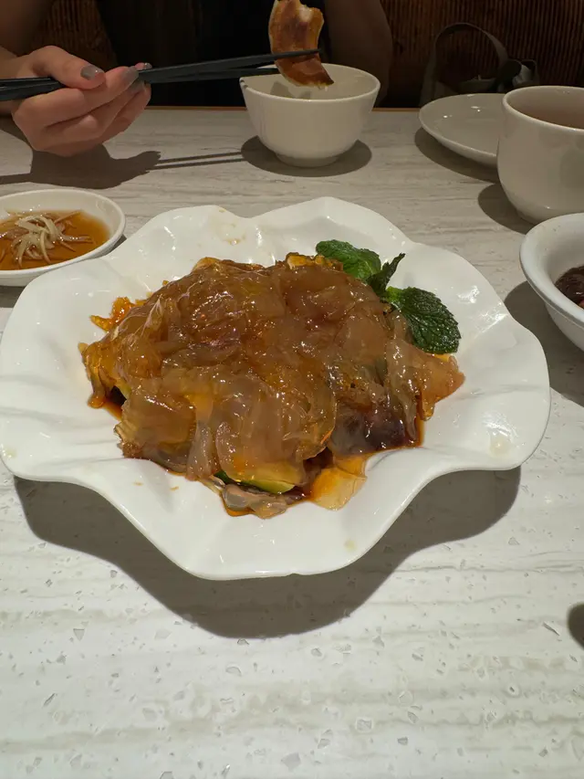 突然好想食上海嘢,所以今晚去咗利舞臺嘅樂天皇朝🥟餐廳嘅燈光,坐位同埋成個格局都令人坐得好舒服,而且我哋問店員有啲咩好介紹嘅時候,佢都好好禮貌咁同我哋講解,所以我哋好快就決定到食啲乜嘢😝另外,值得一提嘅就係佢壺茶係會搵一個爐一路㷫住,確保茶嘅溫度時常都係咁熱♨️樂天皇朝其中一樣最出名嘅名物就係佢個8式小籠包,但之前試過都係覺得原味最出色,所以今次就叫咗六粒原味😌果然水準都保持到,皮做得厚薄適中,一咬落去熱辣辣嘅湯湧出嚟,而且入面嘅豬肉餡亦好有咬口,食完一粒會想繼續追食🥰之後嚟嘅係無錫鮮肉鍋貼,大大隻,外皮煎得好香,啖啖肉,個人覺得唔點汁都已經好夠味😋食完啲傳統嘢之後嚟嘅係醋醬海蜇頭同埋肉碎欖醬乾煸四季豆,依到嘅海蜇有少少唔同,比較闊身好彈同好有口感,而且仲有啲青瓜,酸酸甜甜咁,令我本身飽飽地又有返胃口😂個四季豆亦都好唔錯,連埋啲豬肉碎炒得好香,同埋條條都肥嘟嘟,好味道👍🏻而當晚嘅壓軸主菜就係雲吞雞,呢味菜都真係好足料原隻雞咁滯,一開二🐔雞湯好鮮甜,我哋都飲到差啲唔記得食雞同雲吞🫣隻雞雖然有啲難處理,但整體好滑,咬落唔會起渣,雞味十足,而個雲吞索哂啲雞湯好入味👍🏻最後係一個甜品-桃膠糖水,有雲耳、杞子同埋龍眼,令到成個糖水甜度十足👍🏻…查看更多