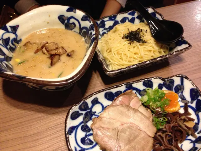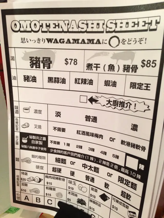 要評價這餐廳,要決定用那把尺去衡量。如要同那些拉麵專門店去比,當然無得比,但若以一間大眾化日式餐廳來說,又OK喎。88元一個黑墨豚骨湯拉麵套餐,送一小球南瓜蓉沙律,兩串燒牛脷,加八蚊又可加一杯菠蘿疏打,份量算相當夠。講返個麵,賣相唔錯,但湯底當然唔算濃,亦食唔出乜野黑墨汁或豚骨味,但唔難食。叉燒普通但豚角煮反而幾好食,似炆到好淋的豬肉。麵身就似那些急凍了的日本高級即食麵。而另一個黃金胡麻沾麵,因為係沾麵湯底也真較濃,湯肉有韮菜(?)、芽菜、豚角煮切片及豬肉碎,都算很足料,感覺比湯拉麵好。另外餐廳送了一小碟仔菠菜小食,算加點分。…查看更多