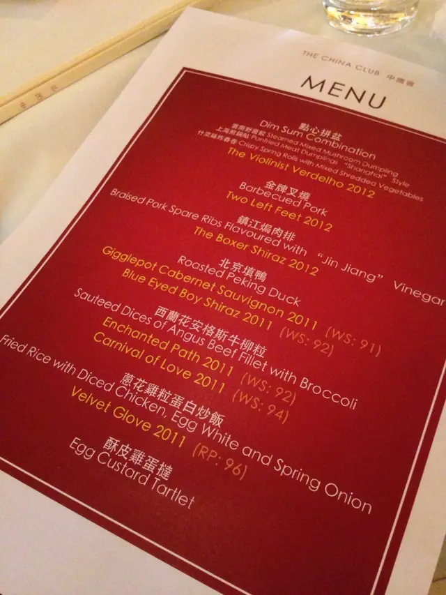 葡萄酒入口商美隆堡為澳洲酒莊Mollydooker在China Club攪wine lunch,有幸成為座上客。抱歉我掛住同莊主夫人傾計,沒有每一道菜都影相。Mollydooker的酒以紅酒為主,只有一支Violinist是白酒。這支是verdelho這種較少在澳洲種的葡萄來造,造得相當不錯,非常清爽,clean finish 。當然多數點心是配白酒較好,而China Club的點心也十分高水準。那雲南對菌餃,肉裡的汁不會比鼎泰豐小籠包遜色。而那個春卷,肉裡的溫度keep到好耐,放了一段時間仍好食。叉燒算是中上水準,再稔一點我會更喜歡。鎮江焗肉排造得醒胃而不太酸,肉質鬆軟。北京填鴨皮也脆,但佢有人幫手分埋夾埋。我自已鍾意自已夾多DD。西蘭花牛柳粒及雞粒蛋白炒飯都有水準。菜單好明顯要就以紅酒為主的酒單。但總括來說,菜式並沒有很特別,都係基本野,但那才見到廚師的功夫是真材實料!…查看更多