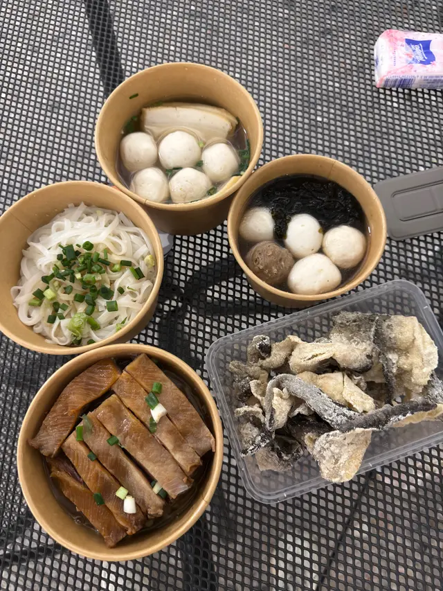 搭完高鐵要搵野食,估唔到開左間地道粉麵店,幾款招牌都幾有驚喜! 崩沙腩河——腩肉燜得軟嫩,肉味香濃,河粉滑溜,整體好入味!紫菜三寶丸河(牛丸、墨丸、魚蛋)——紫菜湯底好特別,鮮味十足!牛丸同墨丸彈牙有嚼勁,魚蛋就係經典街坊風味,配埋河粉好夾。 炸魚皮浸一浸湯再食,又或者就咁食都咁正,絕對係必點小食! 淨魚蛋口感爽彈,簡單樸實嘅味道,蘸少少辣椒油更惹味。 整體來講性價比真係幾高,下次有機會再係呢邊都會再食,價錢又唔貴…Read More