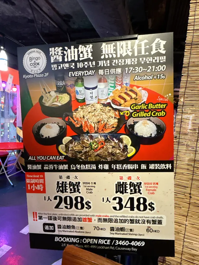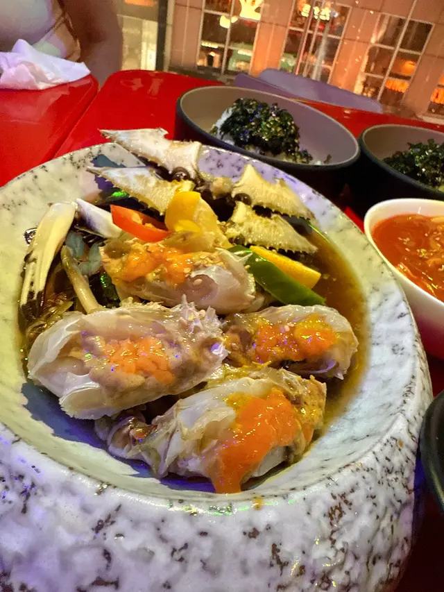 之前黎都係食韓國野,今次黎食醬油蟹放題🦀✨雄蟹$298/雌蟹$348(雌蟹只限第一碟)我揀咗雌蟹,一揭開蓋——爆膏!蟹膏都幾多,啖啖creamy,醬油鹹香啱啱好,撈埋紫菜飯真係無得輸!!蒜蓉牛油蟹都係必點!熱辣辣上枱,牛油蒜香超邪惡其他任食都唔馬虎:韓式炸雞脆皮多汁年糕香腸串辣辣哋好過癮烏冬魚糕湯都唔錯仲有罐裝飲品任飲另外仲額外加配左醬油蝦、鮑魚同扇貝,鮮味十足!食完第二日仲掛住個蟹膏味⋯⋯😭呢度仲有好多打卡位,真係有d好似去左韓國既感覺呀…Read More