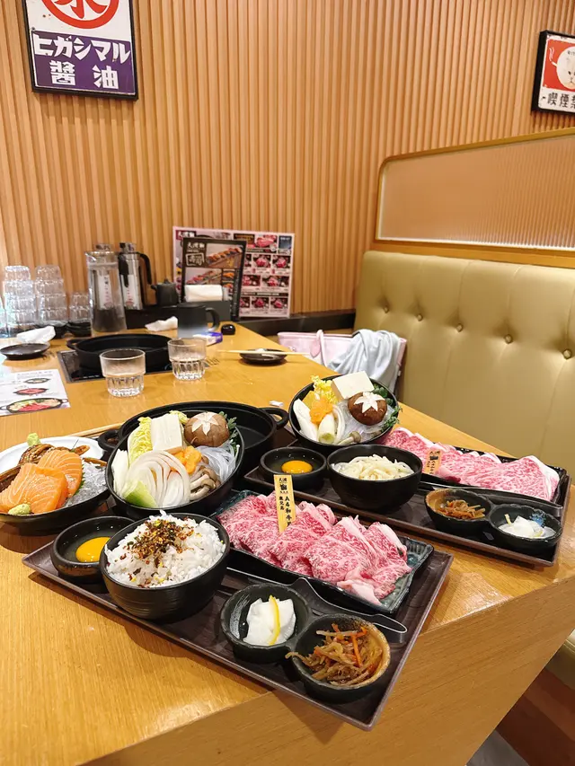 今日同朋友黎食左兩款黑毛和牛套餐加刺身壽司,性價比好高! 黑毛和牛肩胛套餐先上場,肩胛肉雪花均勻,壽喜燒汁甜香滲透肉紋,入口即化,蘸埋蛋漿更滑溜,撈埋烏冬食都幾正!黑毛和牛肉眼套餐就更豪,肉眼油脂甘香,配埋野菜拼盤平衡膩感,佐飯一流! 單點嘅三文魚刺身肥美厚切,穴子燒得軟糯帶微甜,壽司飯醋香剛好,一啖一件超滿足。 二百零蚊食到高質和牛套餐,仲有刺身壽司加持,平時食既壽喜燒都係佔員整好哂,今次可以試下自己整,係幾好既體驗呀!…Read More