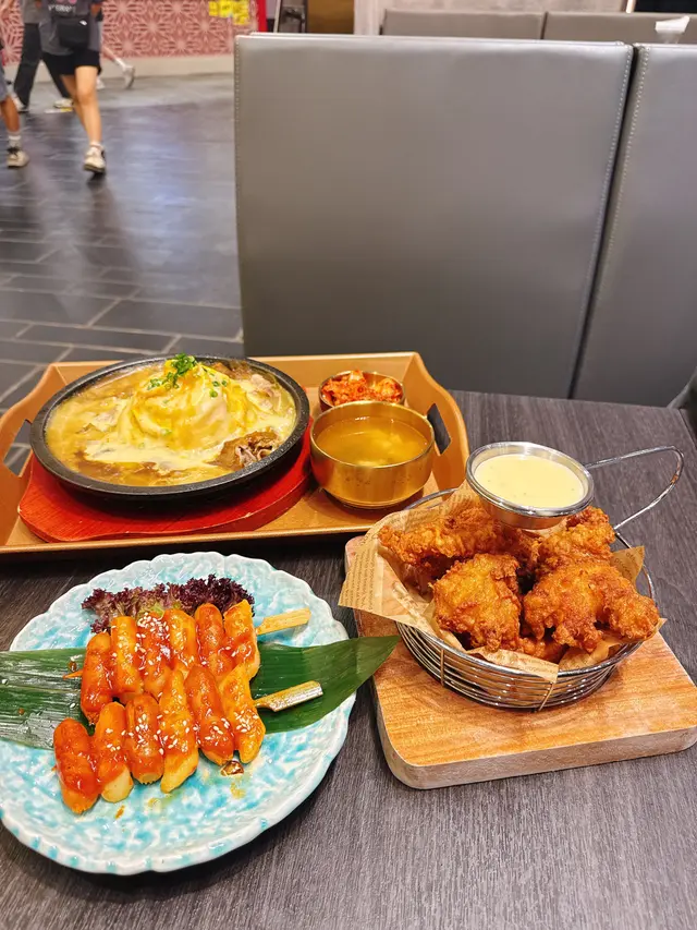 叫咗個鐵板芝士瀑布咖喱牛肉飯,一上枱真係幾有睇頭。個頂有滿滿芝士醬,芝士同咖喱撈埋一齊都幾夾,唔會話好膩。鐵板牛肉炒烏冬就幾彈牙。牛肉片都幾多,唔會孤寒。大人細路都岩韓式芝士炸雞,啲炸雞即叫即炸,外皮脆卜卜,咬開都好juicy!辣年糕腸仔串,年糕煙韌,加埋個辣醬幾惹味!最後杯水果茶幾大杯,生果都幾多,飲落幾清新,解膩一流。總括來講幾抵食,款式多,坐得都舒服。如果喺荃灣諗唔到食咩,呢度都係個唔錯嘅選擇。…Read More